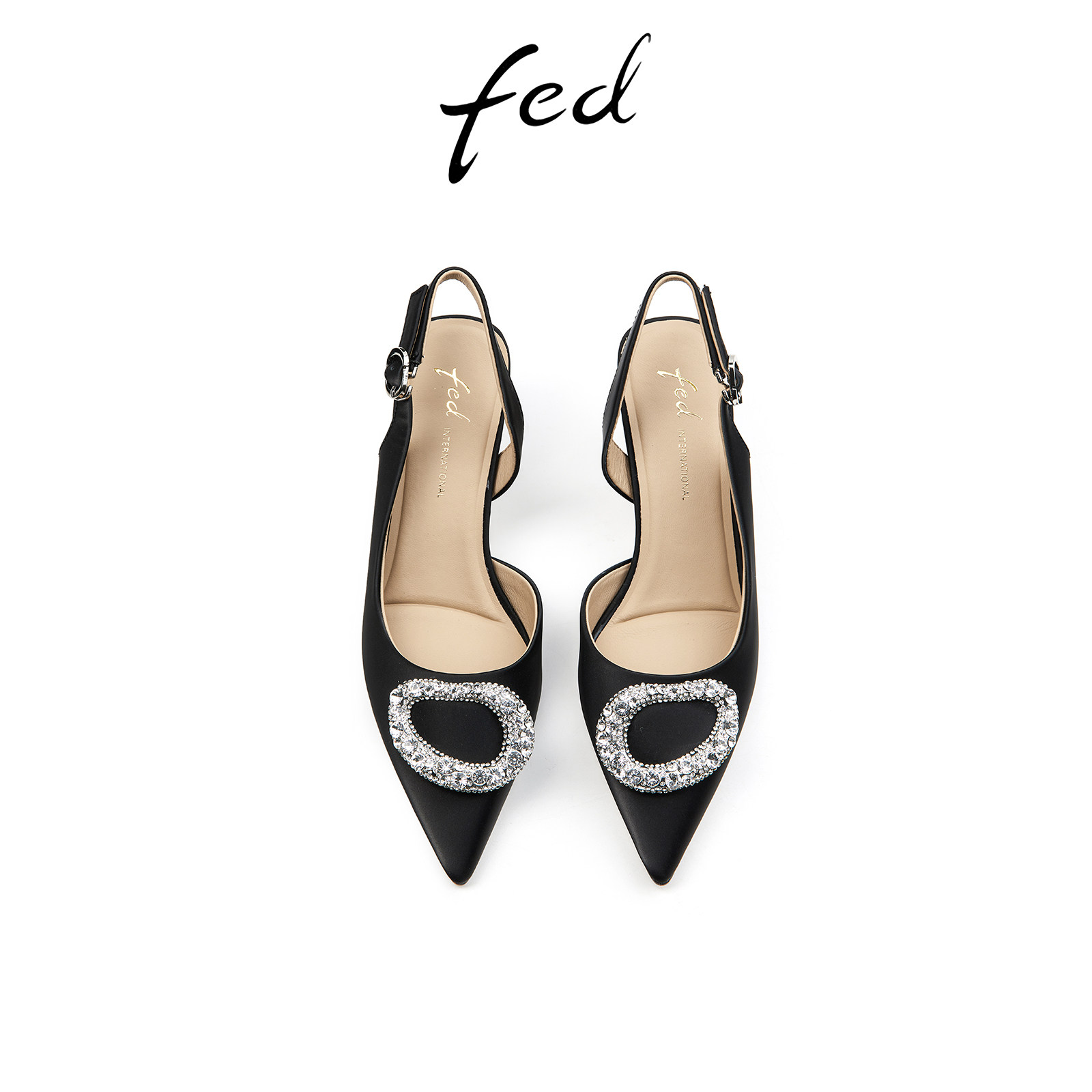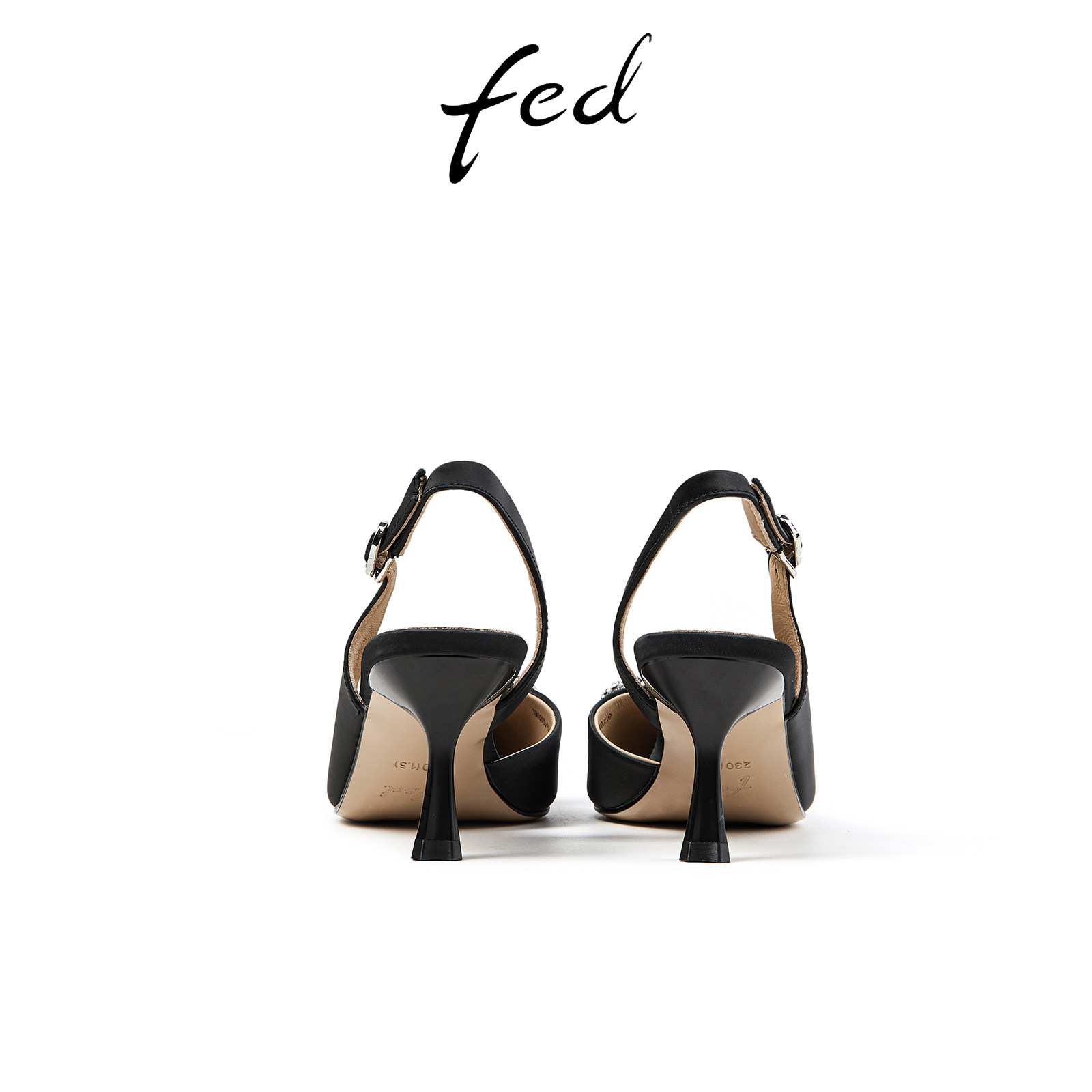 fed黑色尖头后空单鞋夏季新款女鞋通勤真皮高跟凉鞋女D0420-ZC360