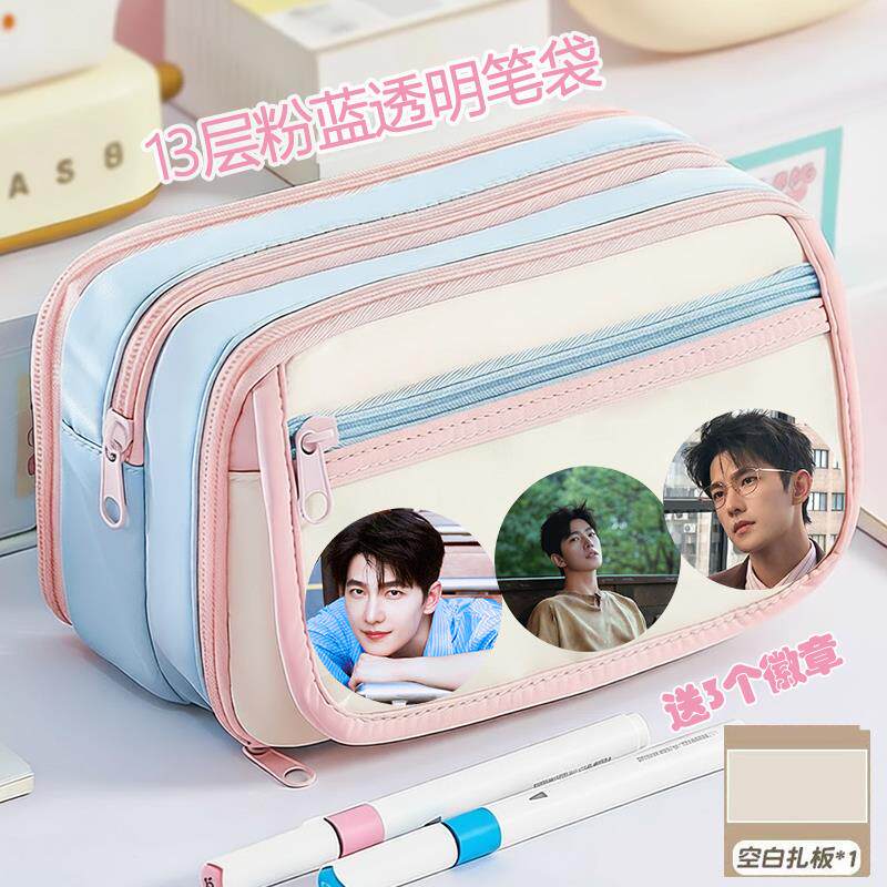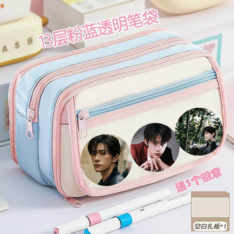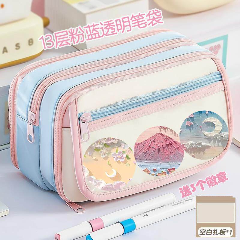 正能量文字笔袋新款粉蓝高颜值痛包大容量学生铅笔盒小清新可放