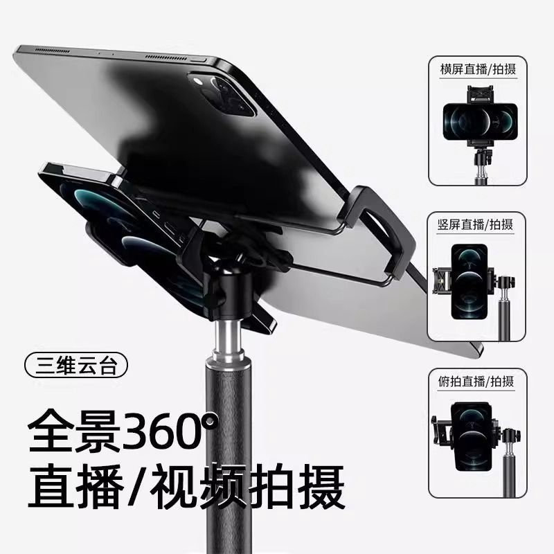 手机平板支架ipad桌面落地通用便携式自拍杆多功能视频直播三脚架