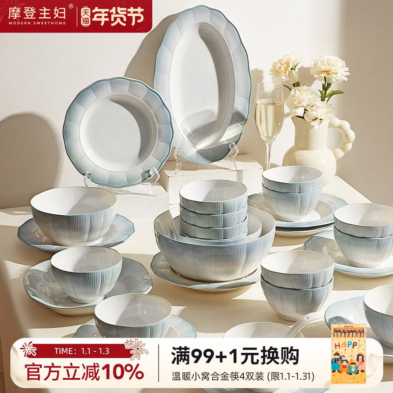 摩登主妇餐具2025新款釉下彩高颜值乔迁新居礼物碟筷碗盘套装家用