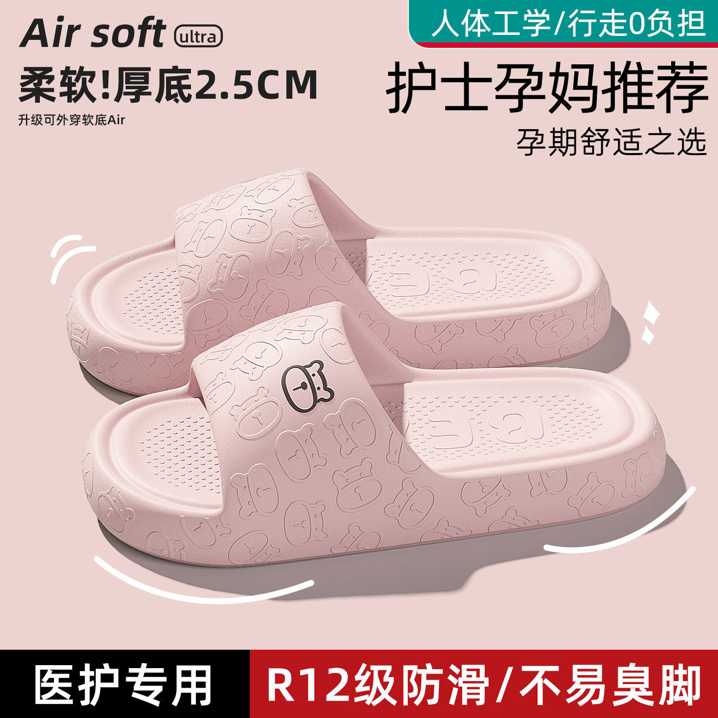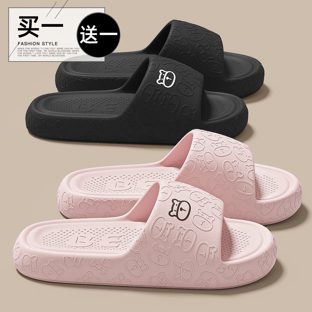红豆买1送1拖鞋女士2026新款室内家居情侣一对浴室静音凉拖鞋男夏