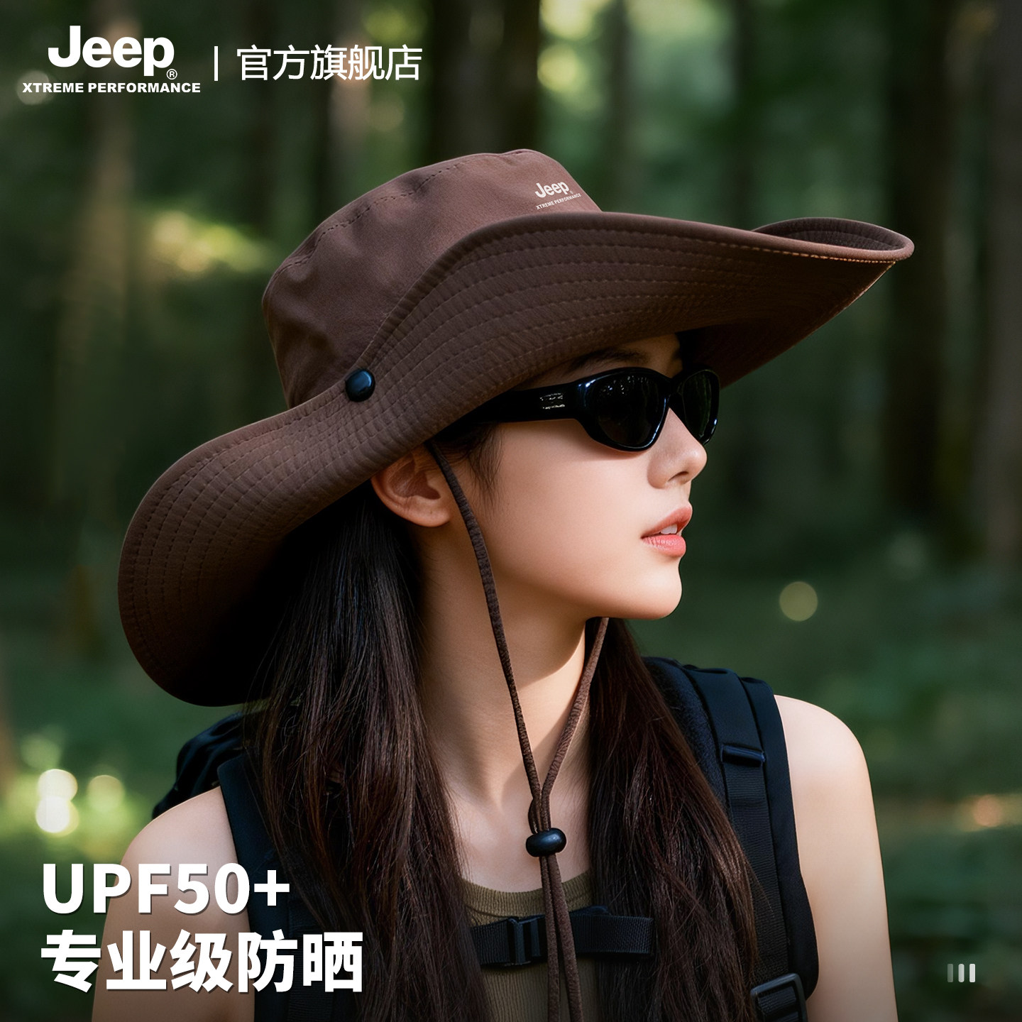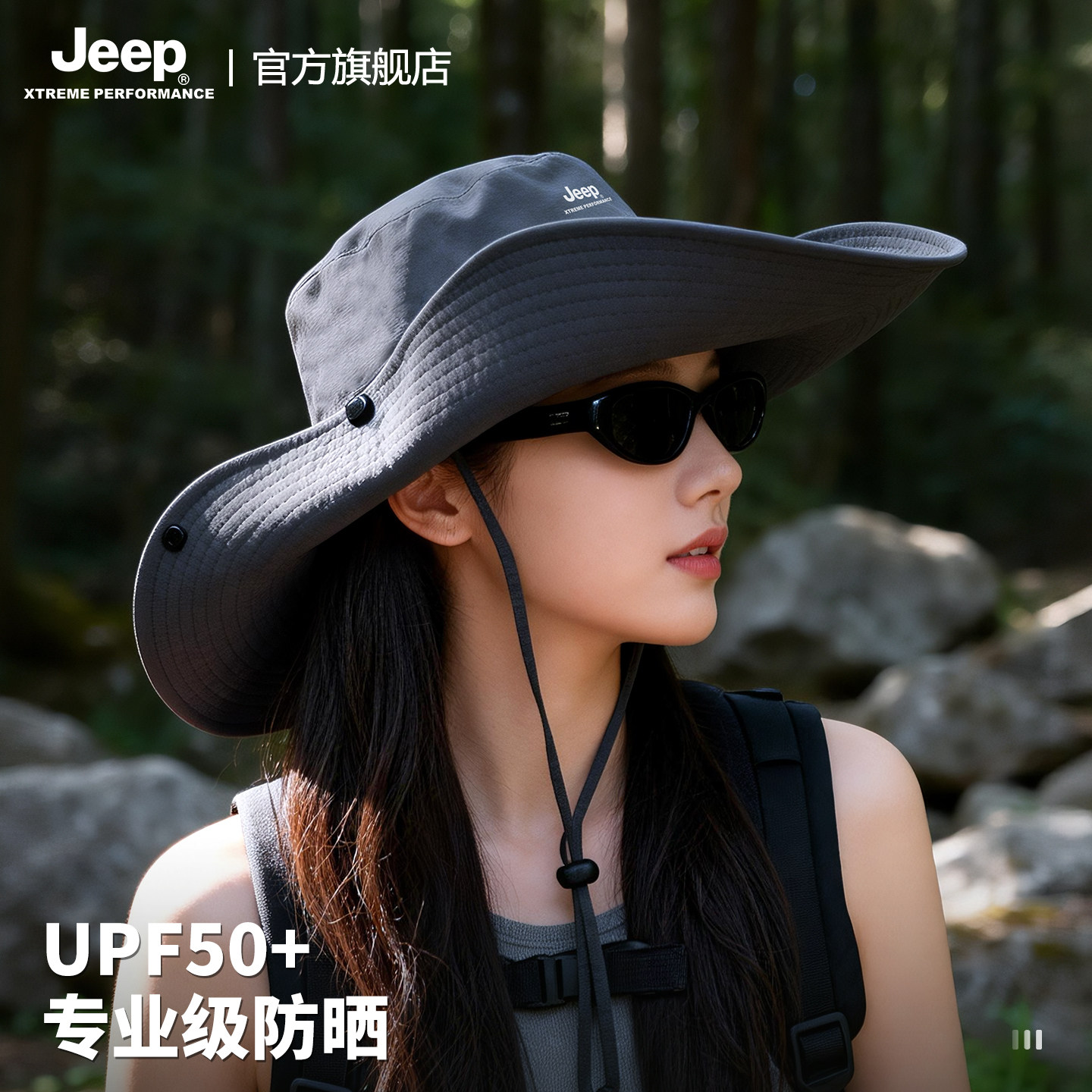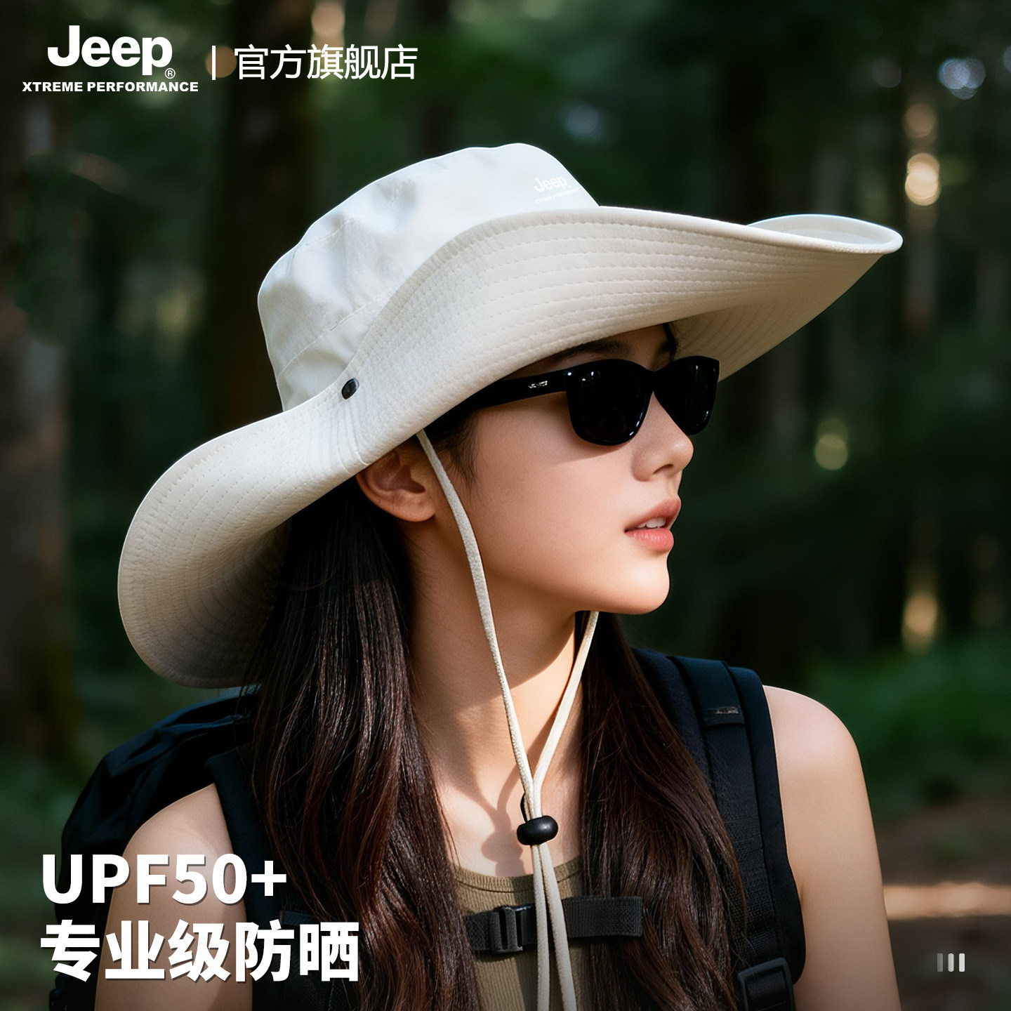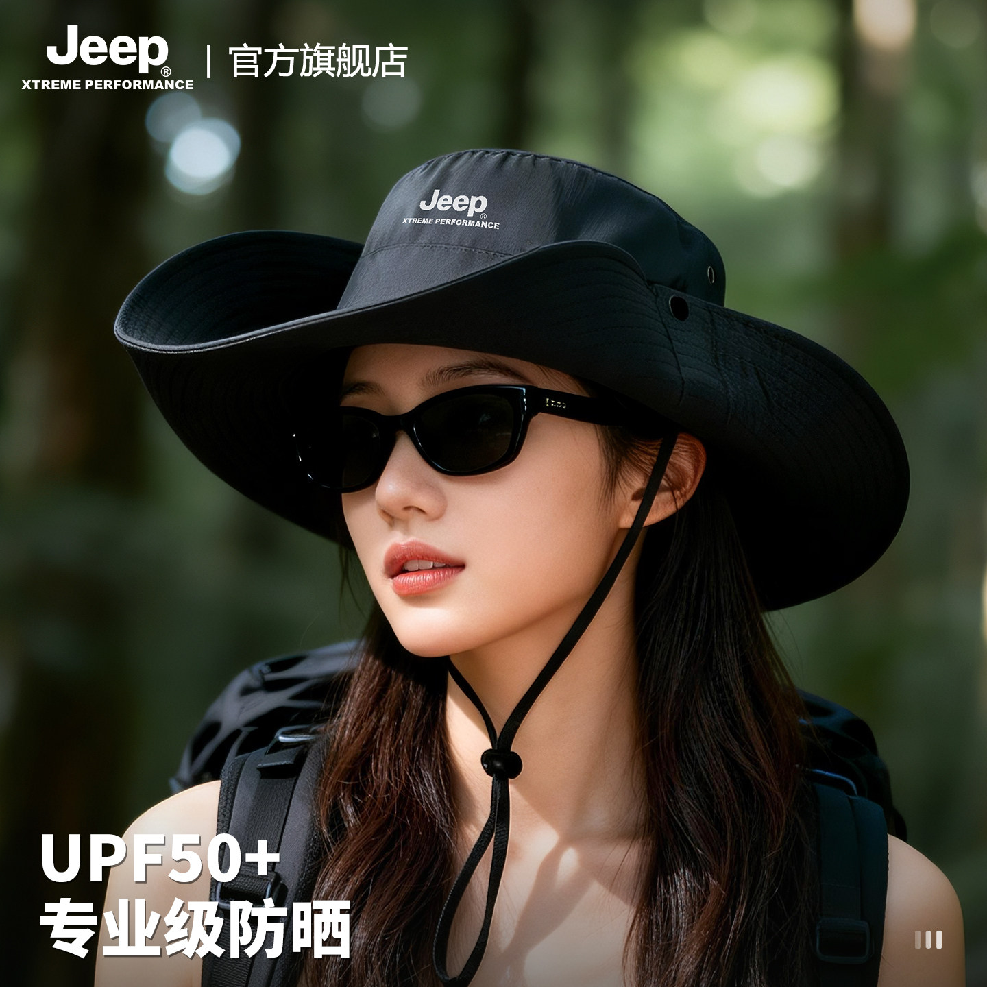 jeep吉普女士夏季防紫外线遮阳渔夫帽户外徒步大檐防晒太阳帽子女