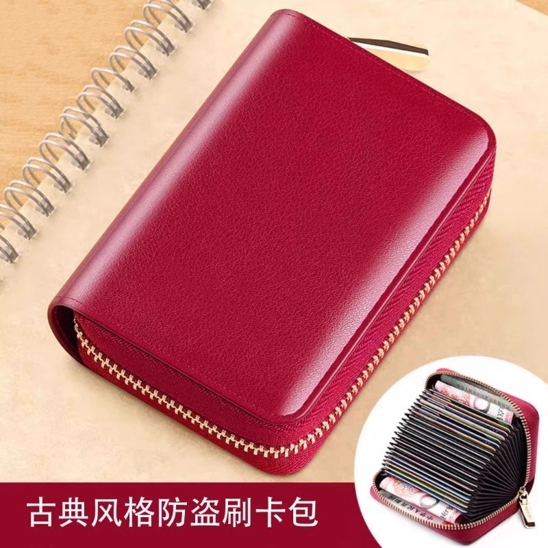 时尚新款真皮质感风琴卡包女防消磁超薄精致高档大容量多卡位钱包