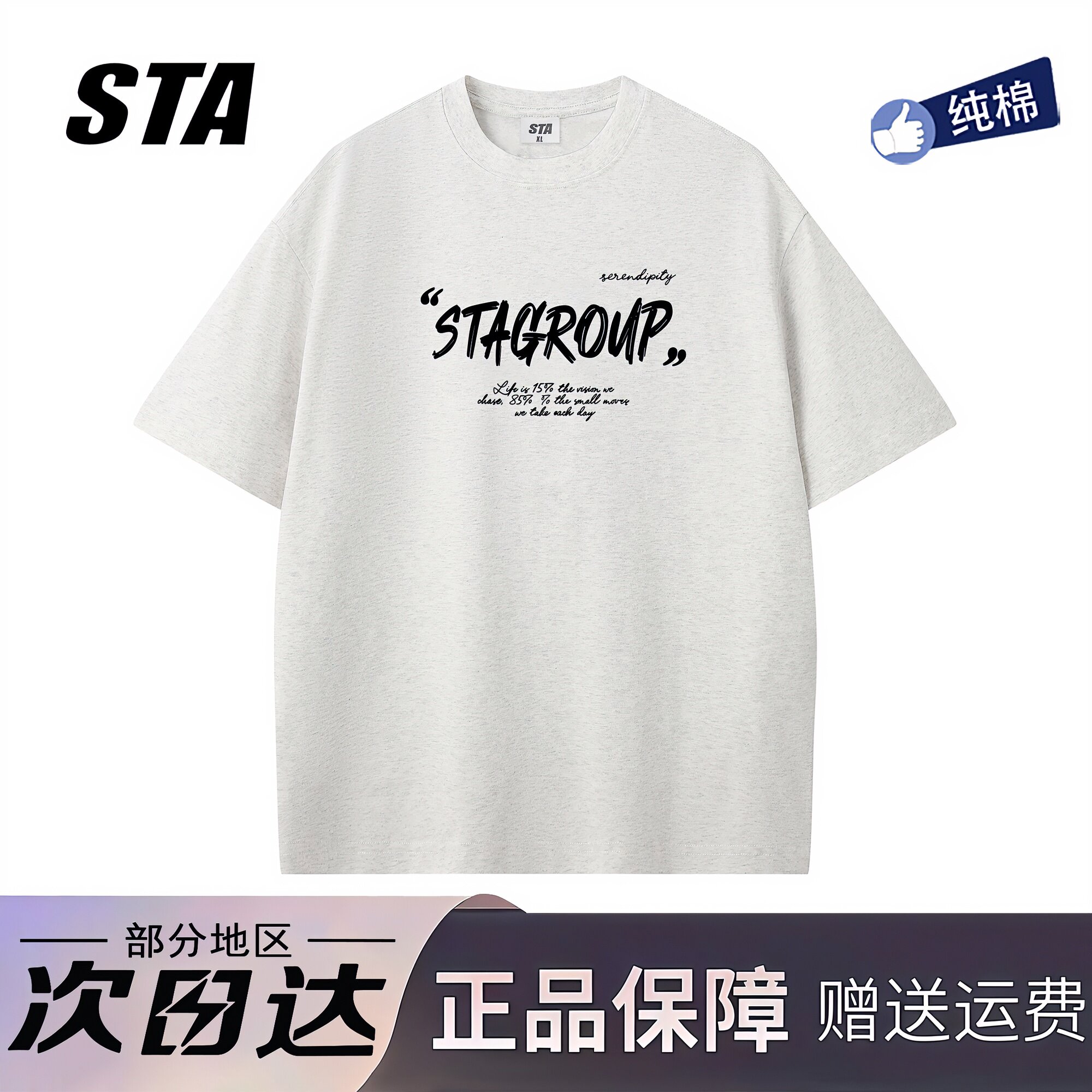STA旗舰店基础款小logo印花男女短袖美式潮牌重磅纯棉情侣宽松t恤