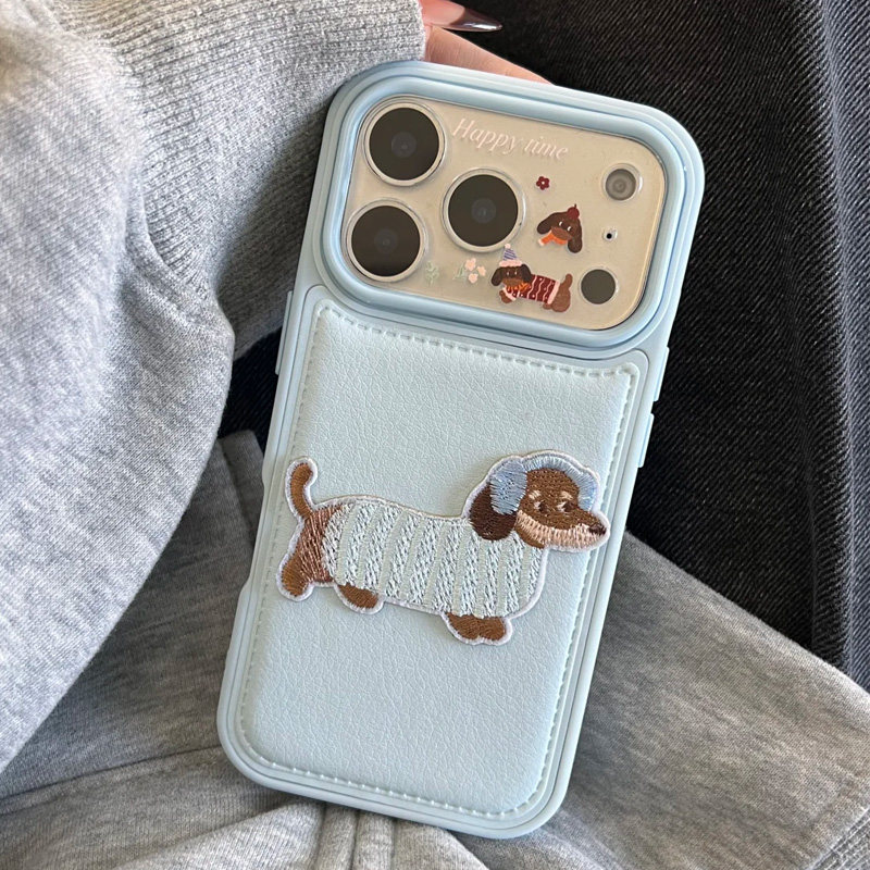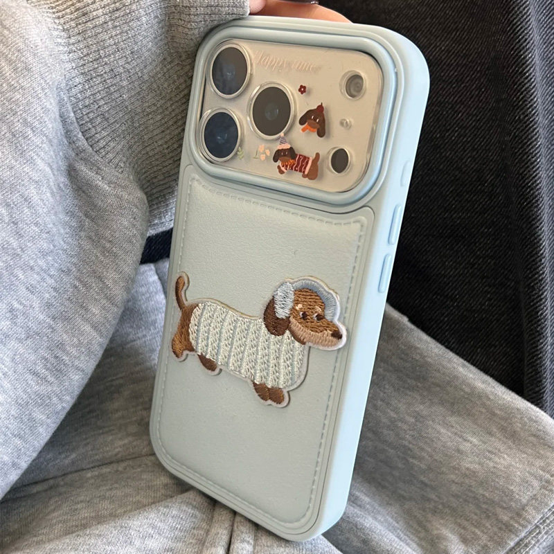 刺绣音乐狗公仔适用苹果16promax手机壳iphone14pro新款13卡通12日韩11保护套15promax防摔17pro大孔皮纹气囊