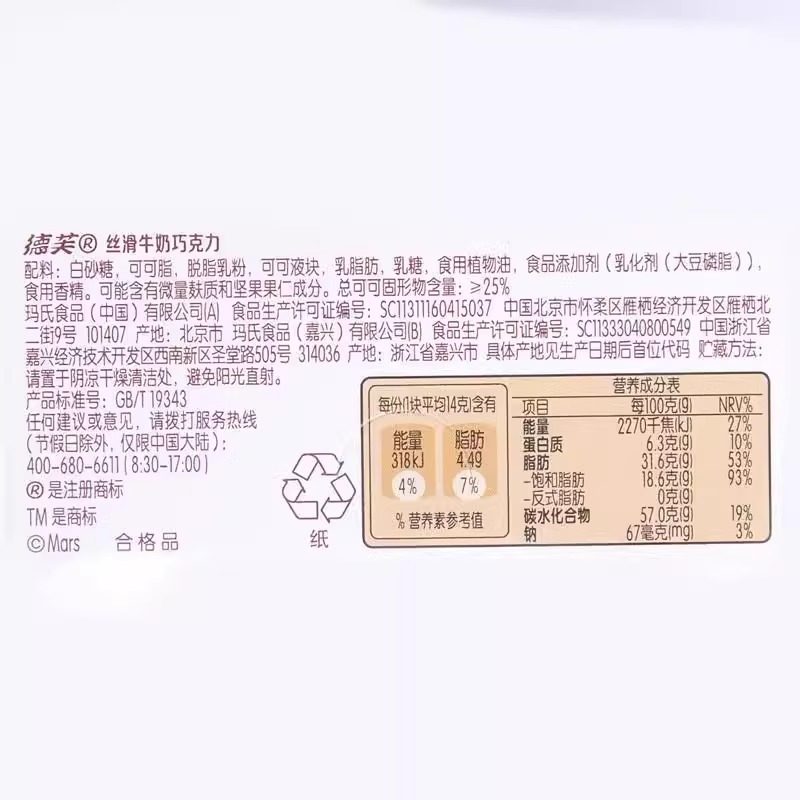 德芙巧克力丝滑牛奶过节送女友家人礼物解馋零食喜糖包装零食糖果
