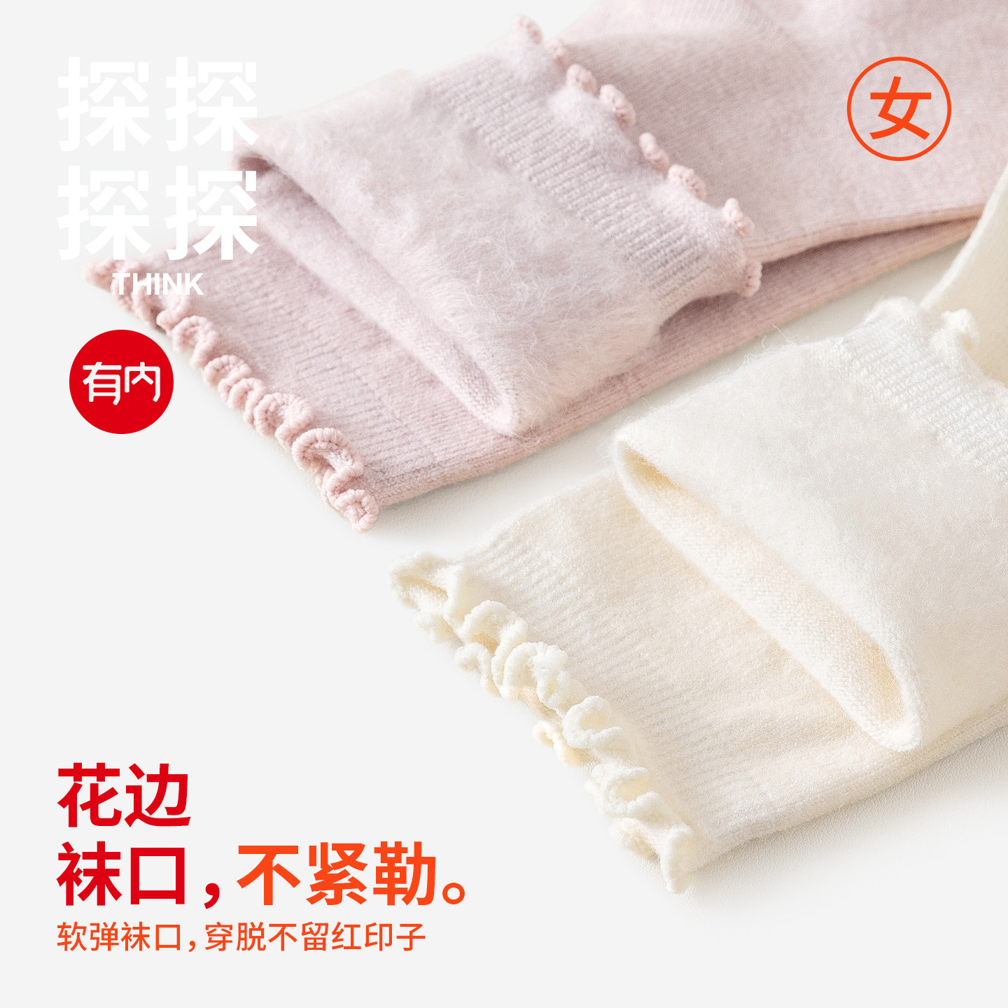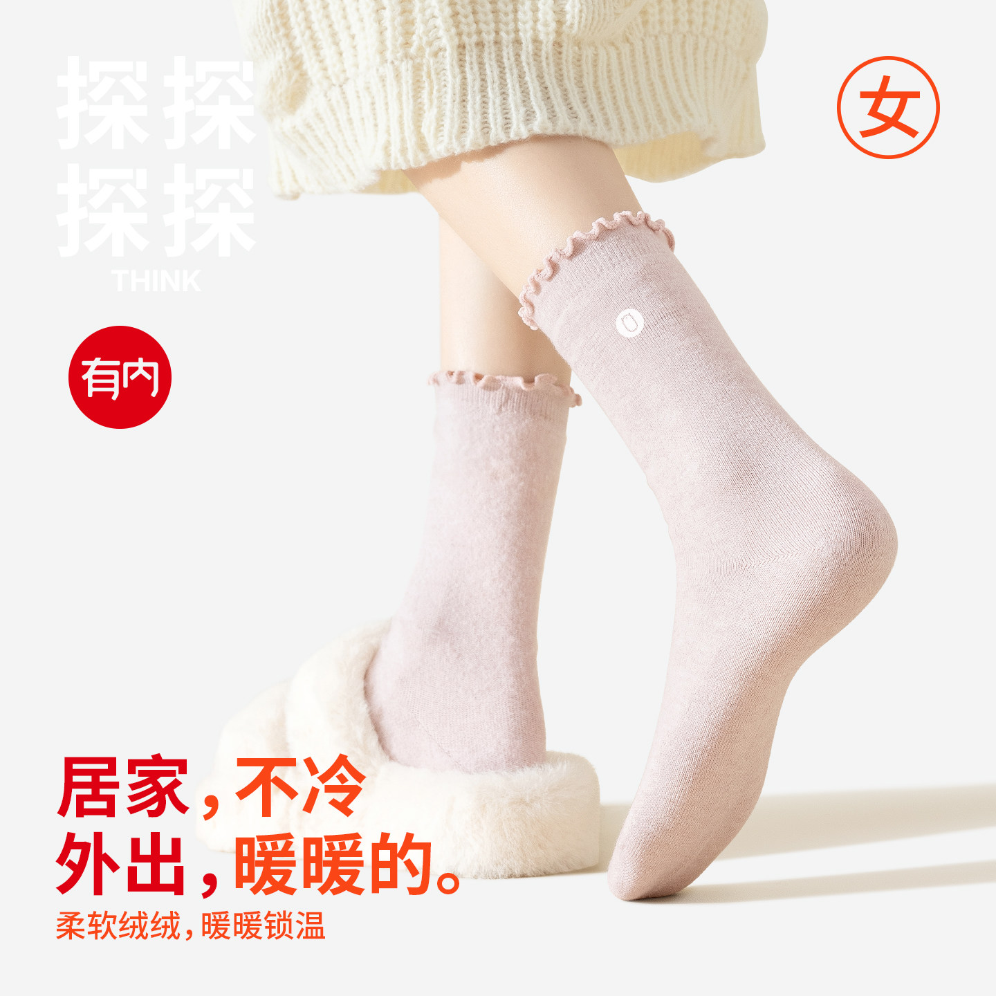 有内袜子女款中筒袜加绒保暖秋冬季长袜木耳花边堆堆搭配勃肯鞋