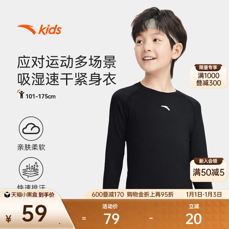安踏儿童装长袖t恤男童紧身训练服体能运动速干衣弹力上衣打底衫