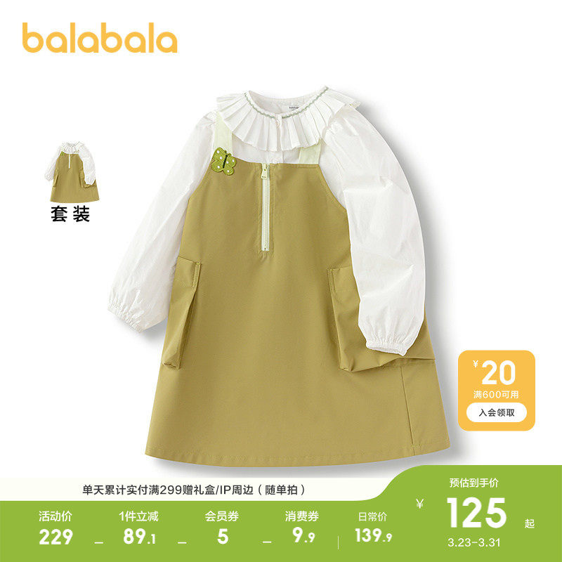 巴拉巴拉童装女童连衣裙儿童套装2026春秋新款背带裙甜裙子两件套