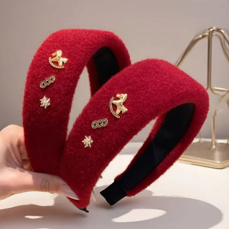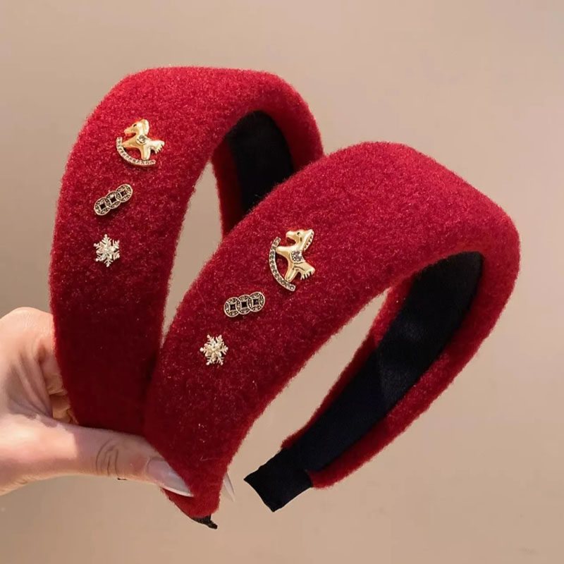 新年红色小马毛呢宽边发箍女高级气质头饰高颅顶洗脸压发头箍发饰