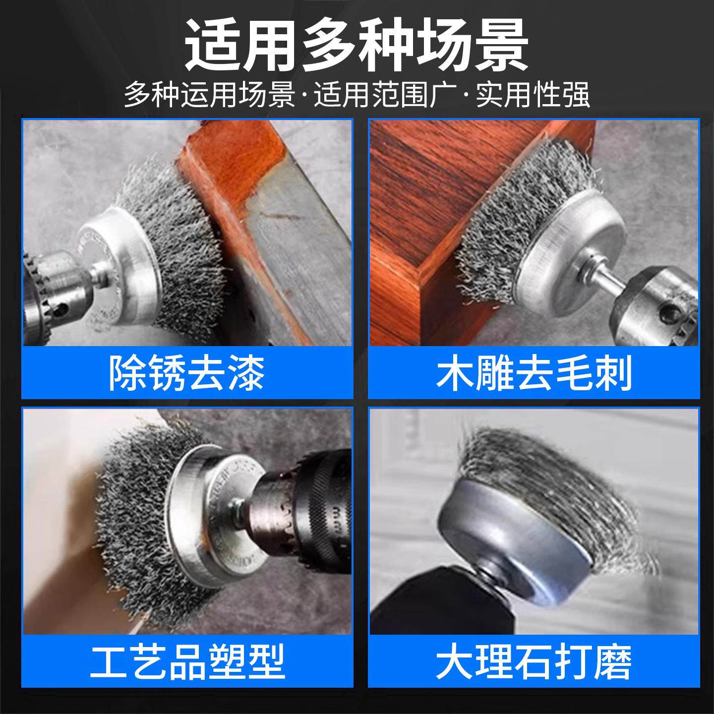 不锈钢钢丝刷带柄电动钢刷手电钻刷头磨头除锈打磨抛光轮神器清洁