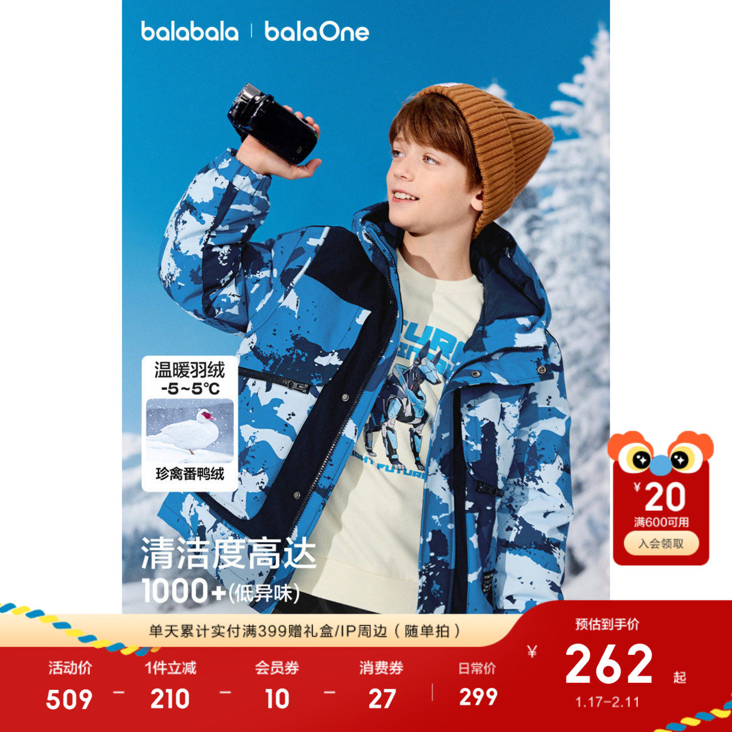巴拉巴拉童装男童羽绒服2025新款加厚保暖外套防泼水冬假两件上衣