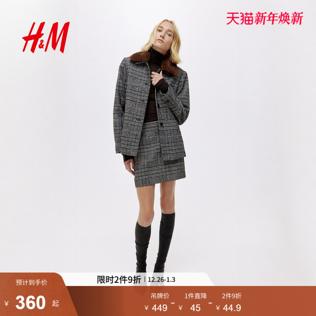 HM女装毛呢外套2025冬季新款羊毛混纺外套冬装短款大衣1300040