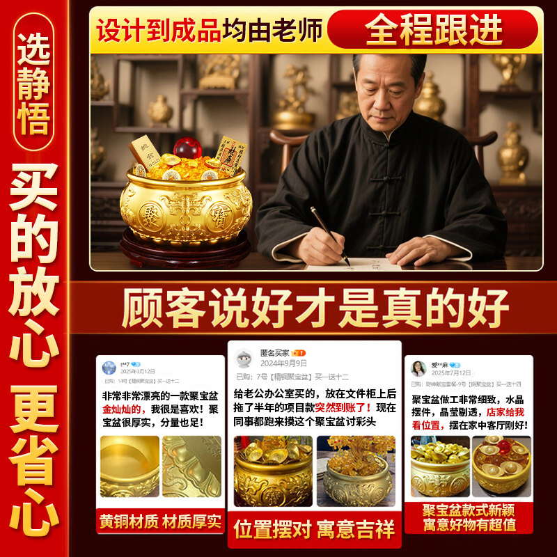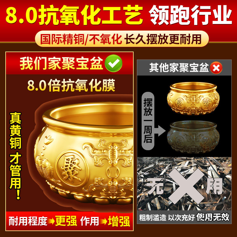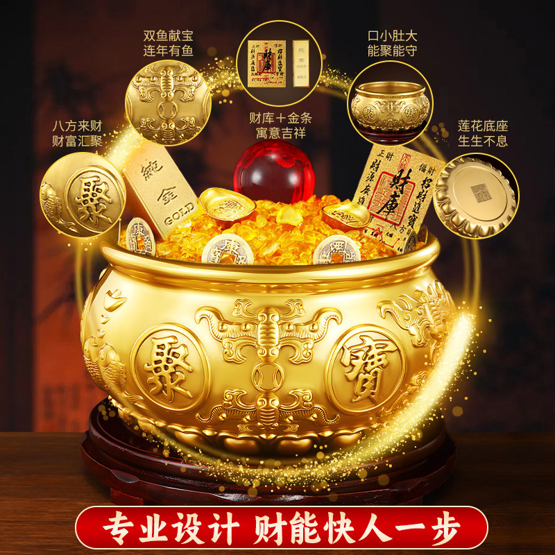 聚宝盆摆件黄铜米缸招财聚财家用八方来财存钱罐开业礼品套装客厅