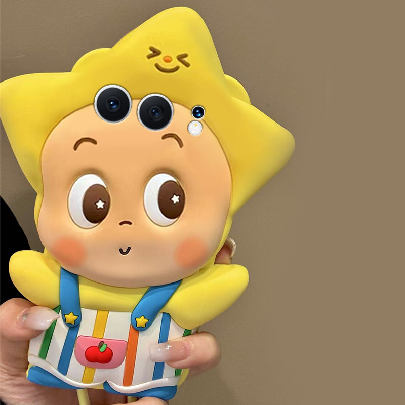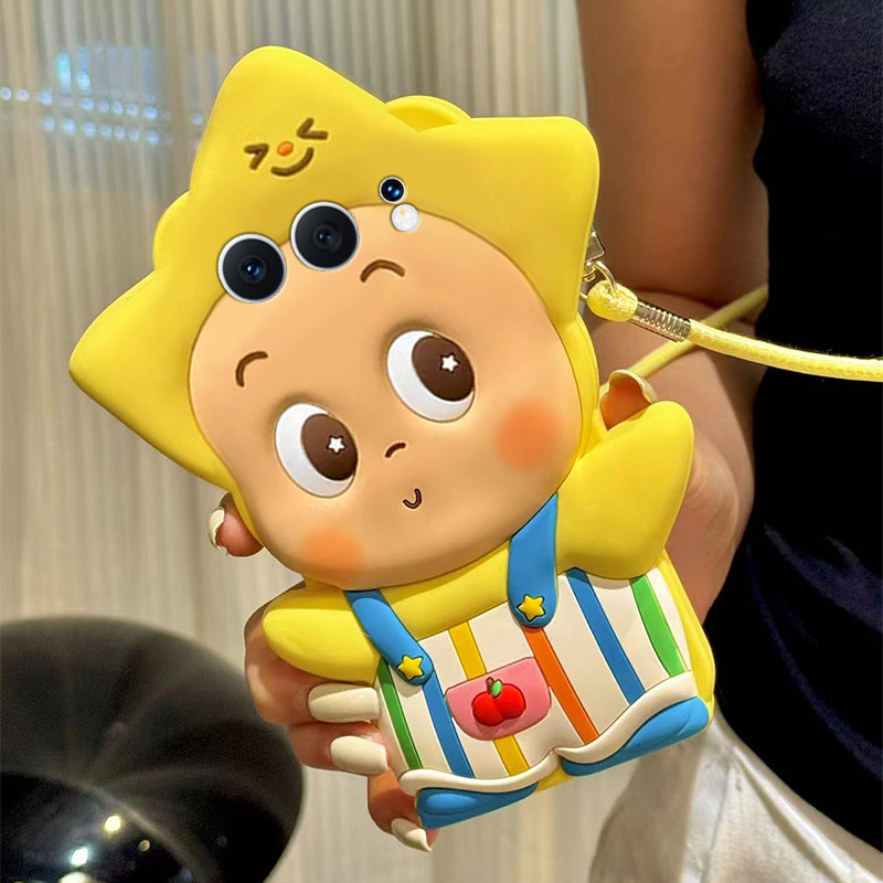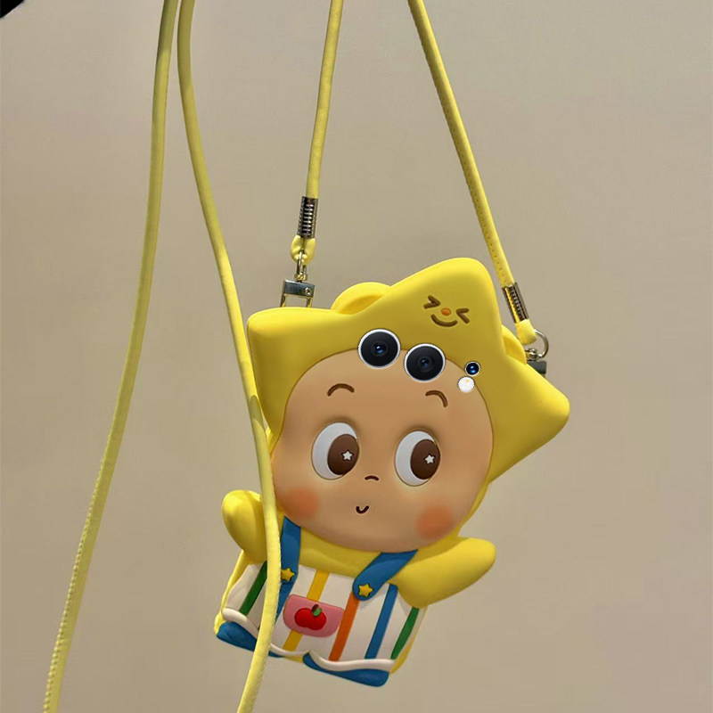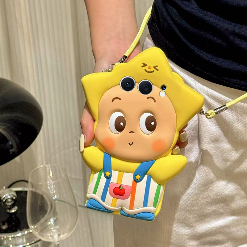 手机壳硅胶可爱卡通呆萌背带裤星星人带斜跨
