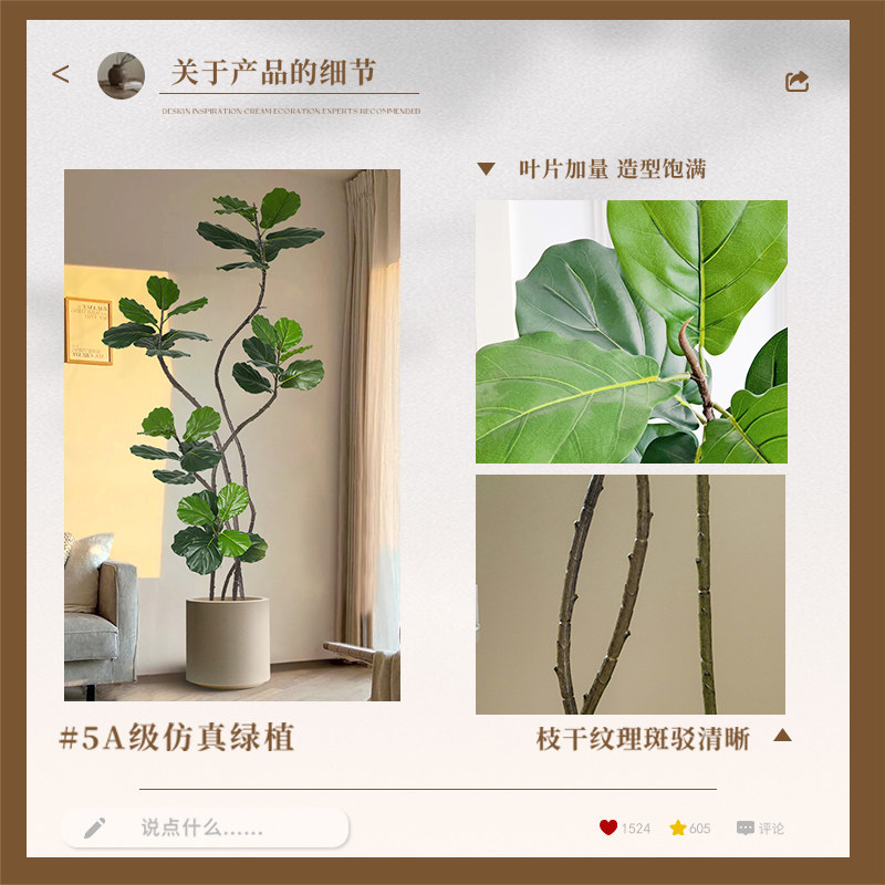 仿真植物琴叶榕落地盆栽室内大型绿植摆件客厅轻奢装饰花假树氛围
