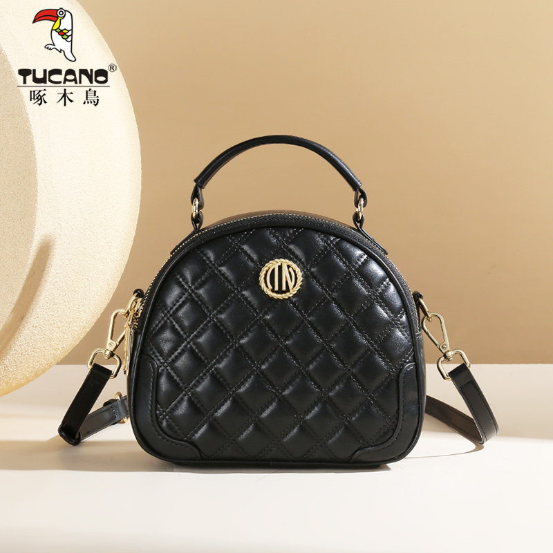 啄木鸟女包2025新款高级感时尚百搭中年菱格手提小圆包单肩斜挎包