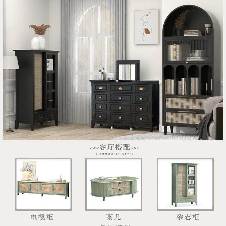 全实木轻奢实木雕花做旧复古全实木白色儿童书柜美式乡村定制家具
