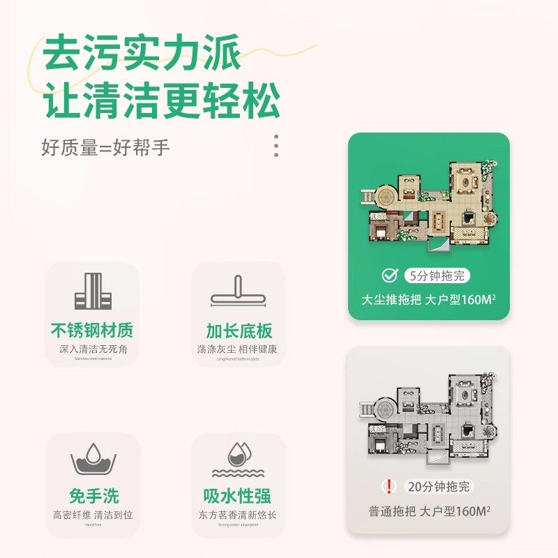 索邦洗脸巾小拖把懒人迷你拖把夹布洗面巾二次利用自动换纸地拖