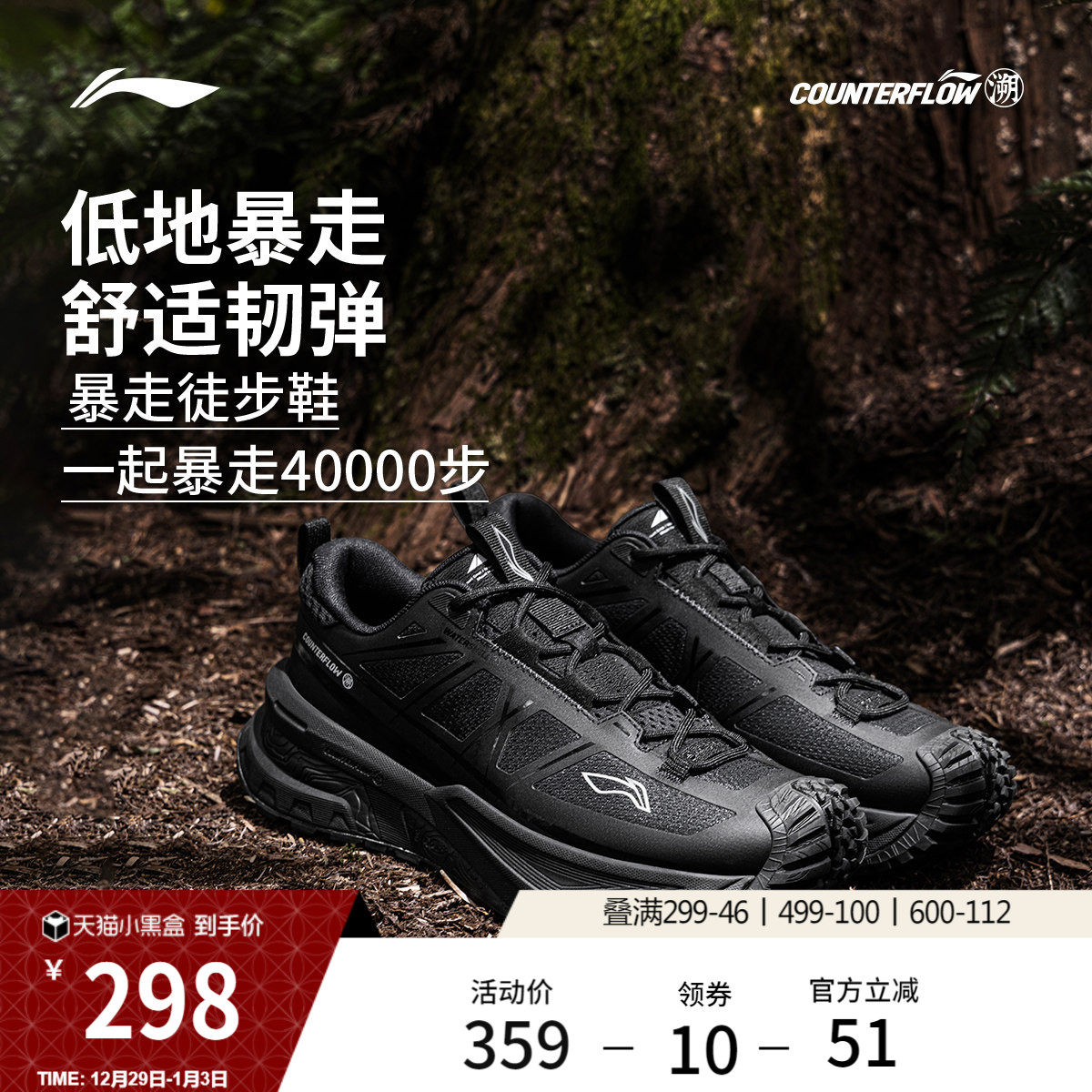 李宁户外CF溯行川徒步鞋丨男女软弹稳定支撑防泼水防滑登山运动鞋