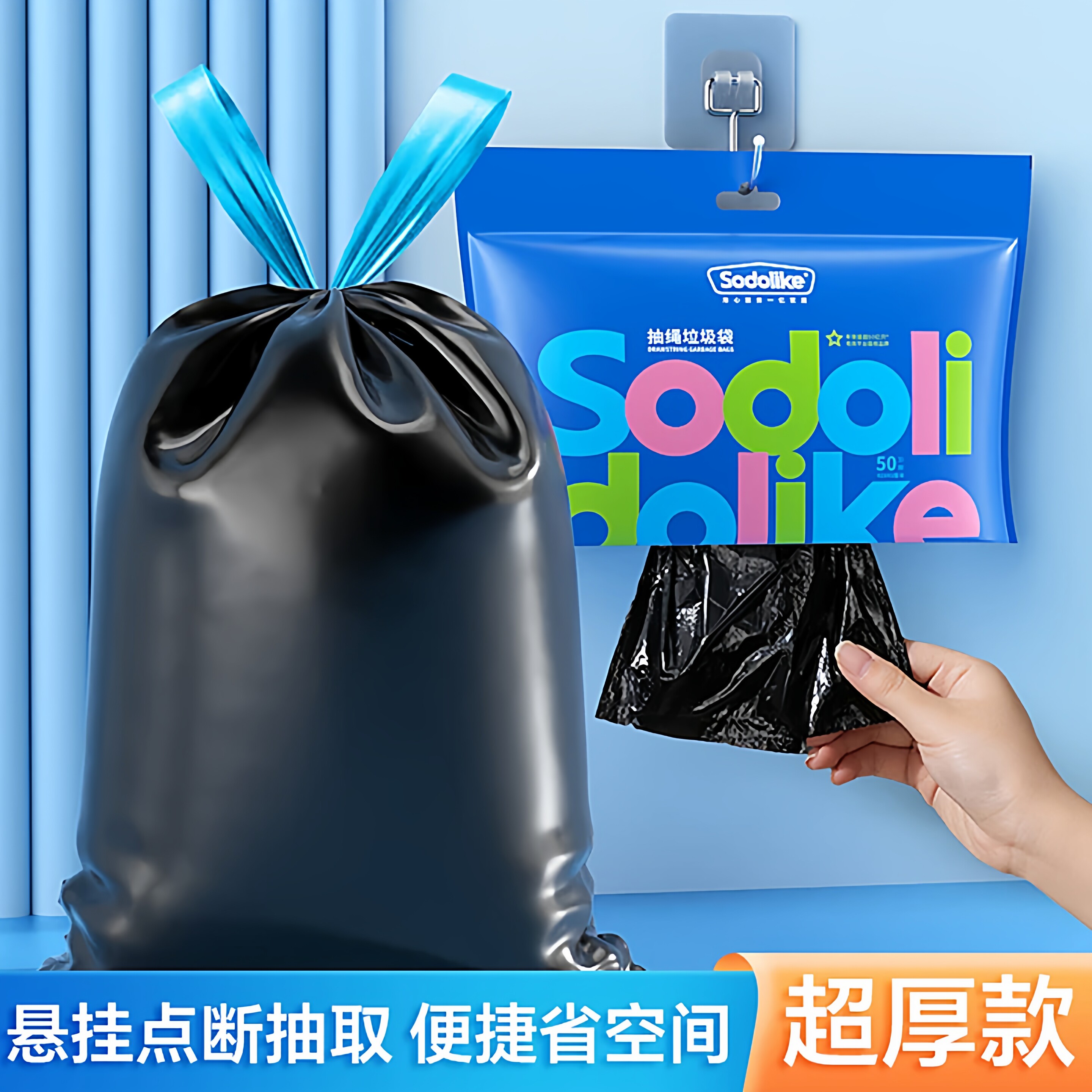 手提式抽绳垃圾袋家用加厚实惠批发装厨房黑色大号垃圾袋