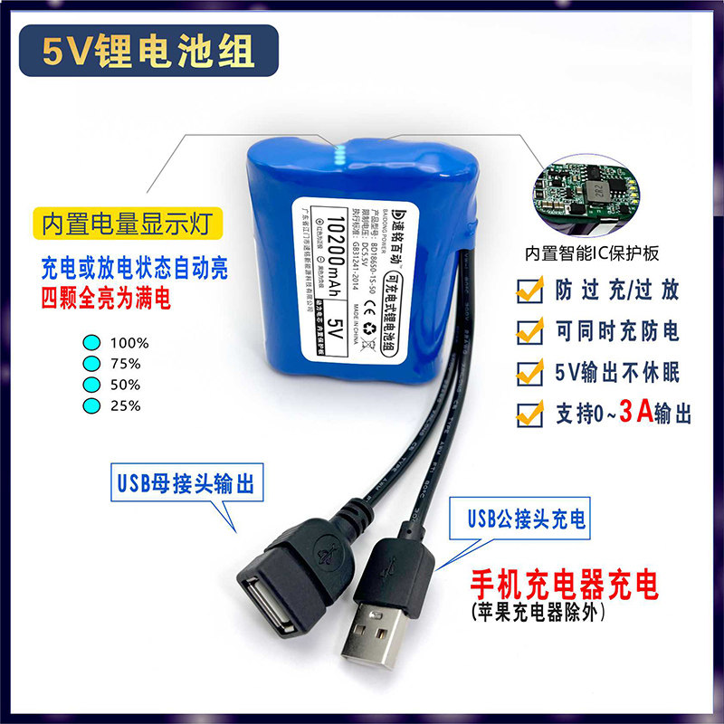 5V锂电池组可充电电源户外太阳能监控音箱LED灯风扇单片机18650