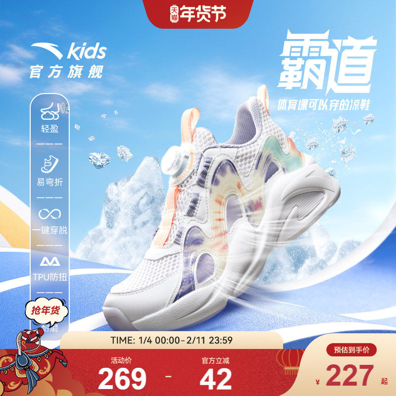 安踏儿童女大童框子鞋网面运动鞋跑鞋2025夏新款透气防滑跑步凉鞋