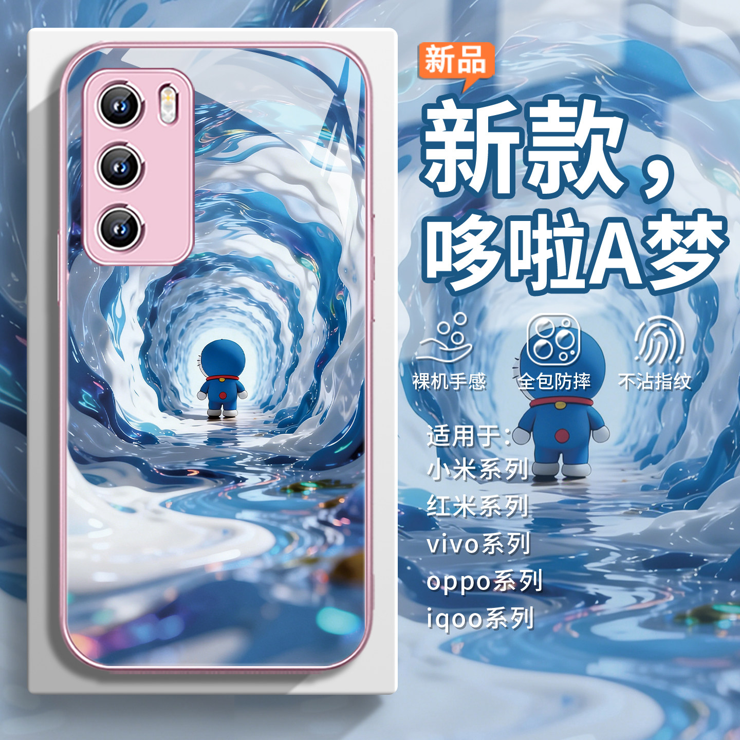 蓝胖子适用opporeno15手机壳小米17时光通道哆啦A梦红米k90卡通vivox300pro可爱s50日系iqoo15动漫findx9女款