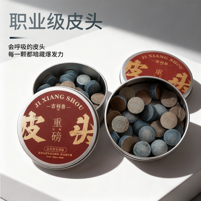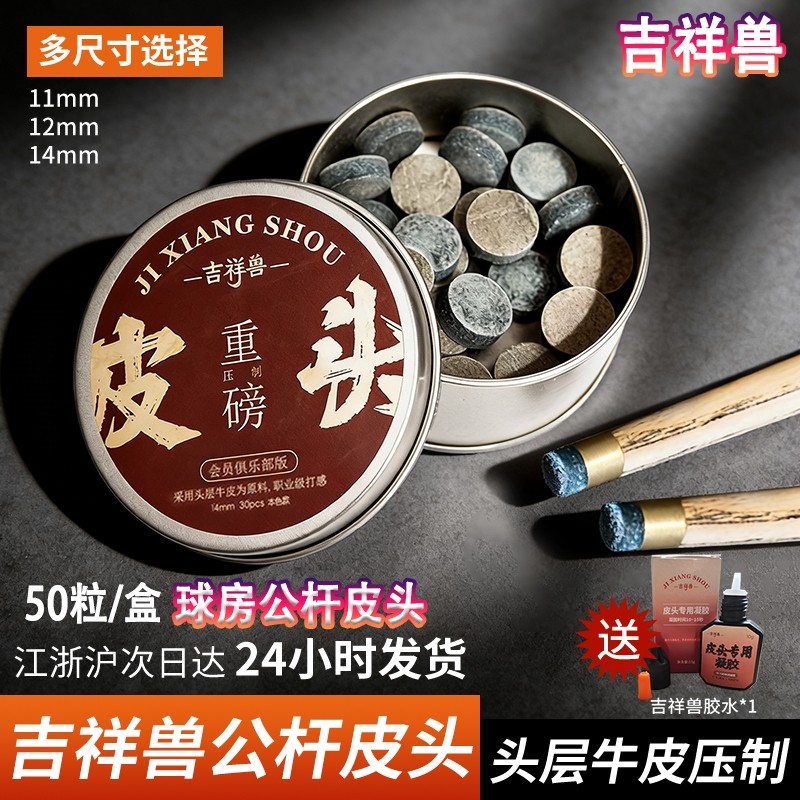 吉祥兽皮头台球杆单层皮头小头斯诺克专用枪头黑八桌球台球杆配件