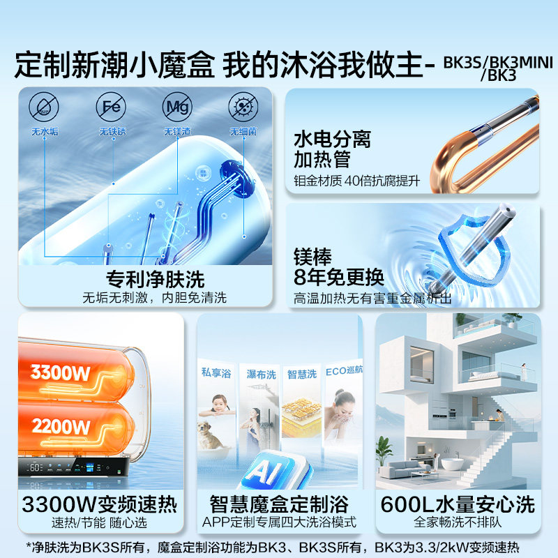 海尔小红花套系官方电热水器扁桶双胆家用洗澡速热一级魔盒BK3S