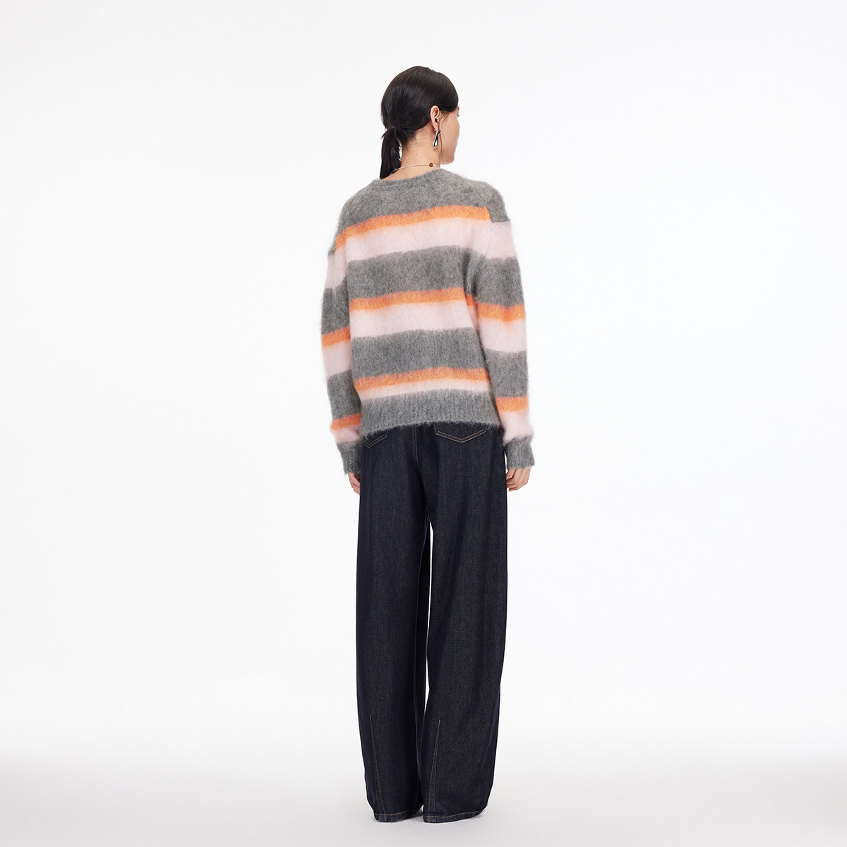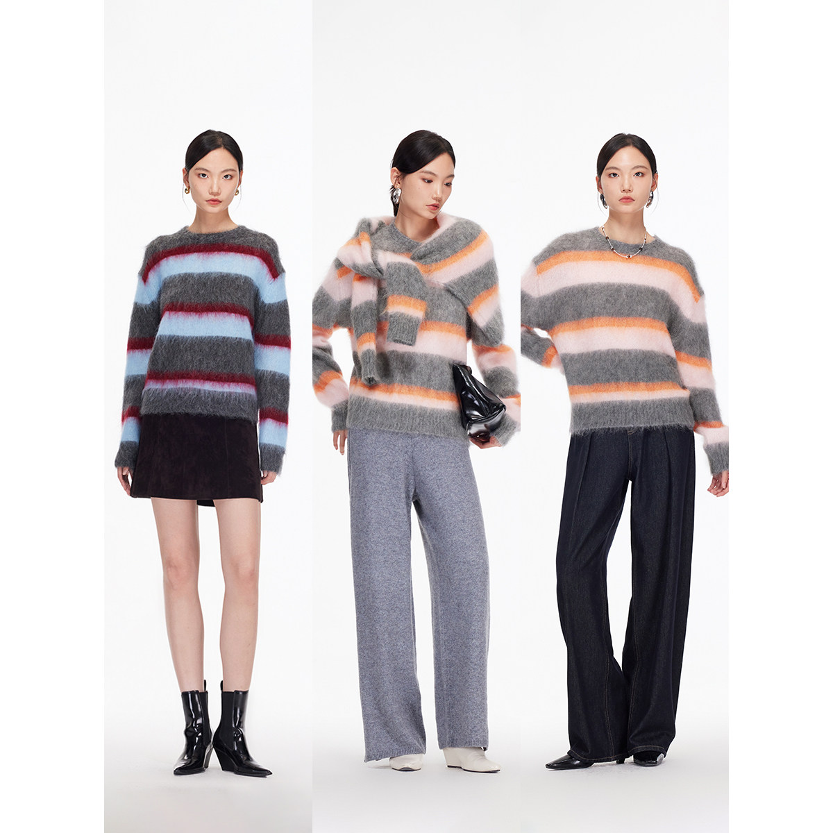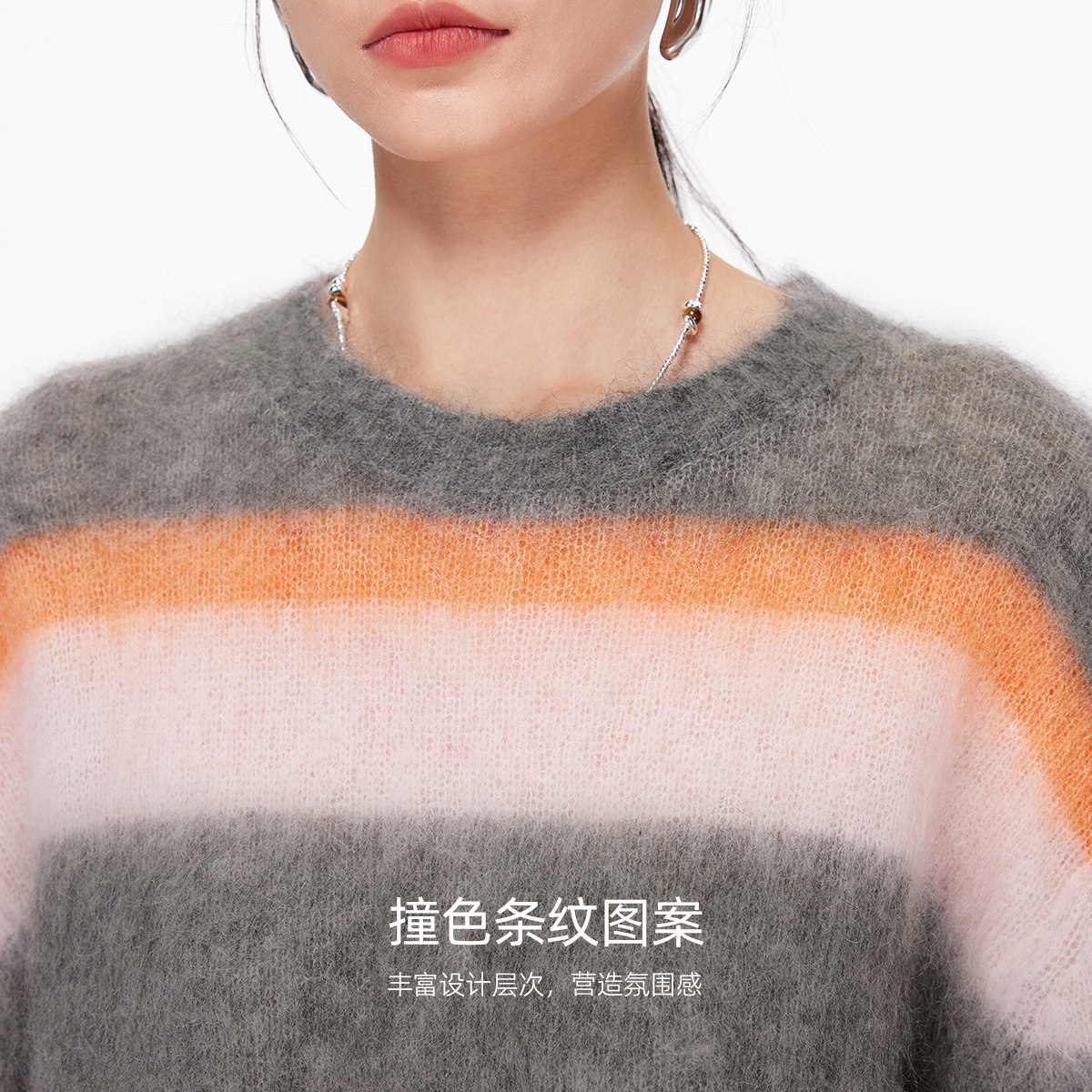 Vero Moda奥莱毛衣女2025秋冬新款含绵羊毛马海毛条纹上衣高级