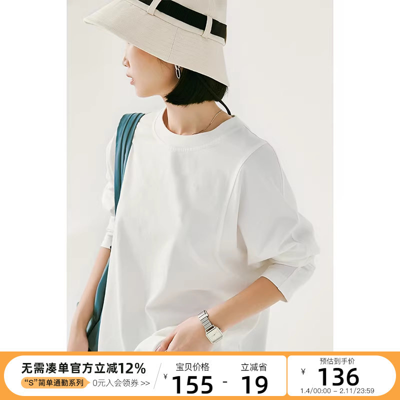 CLOUDSPACE女装新疆棉白色长袖T恤基础款设计感2025秋圆领T打底衫