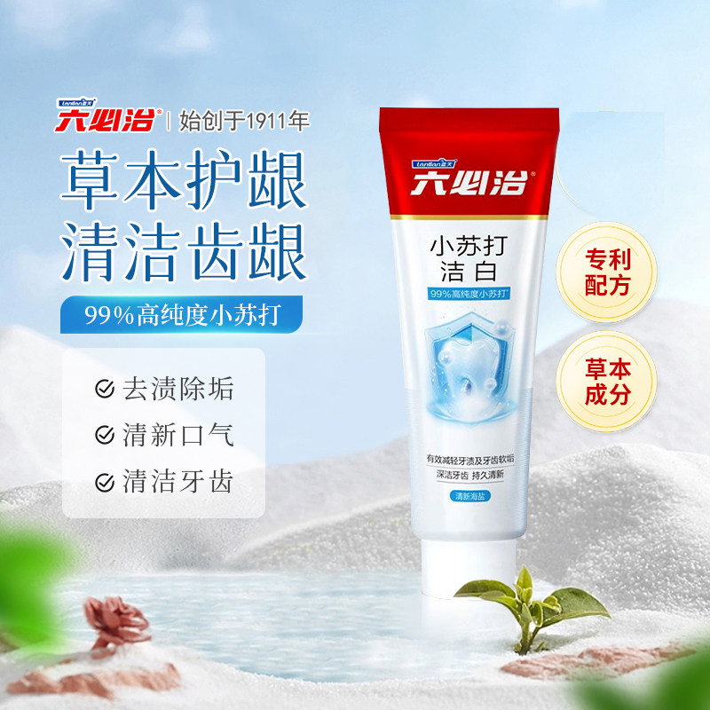六必治小苏打牙膏健齿洁白亮白去黄去牙渍牙垢国货老品牌家庭装