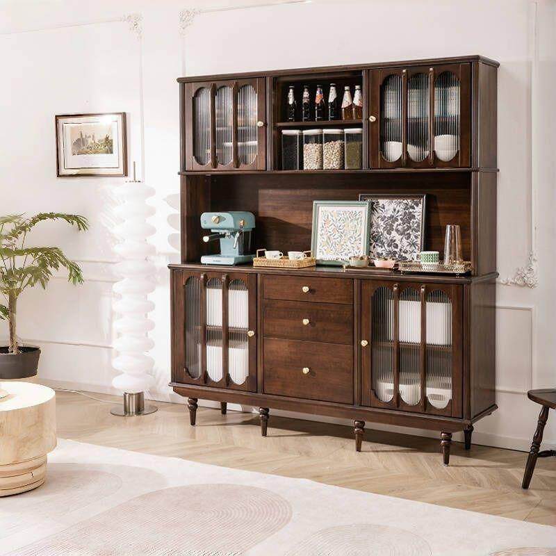 法式复古多功能高餐边柜全实木美式轻奢储物茶水柜子西厨酒柜碗橱