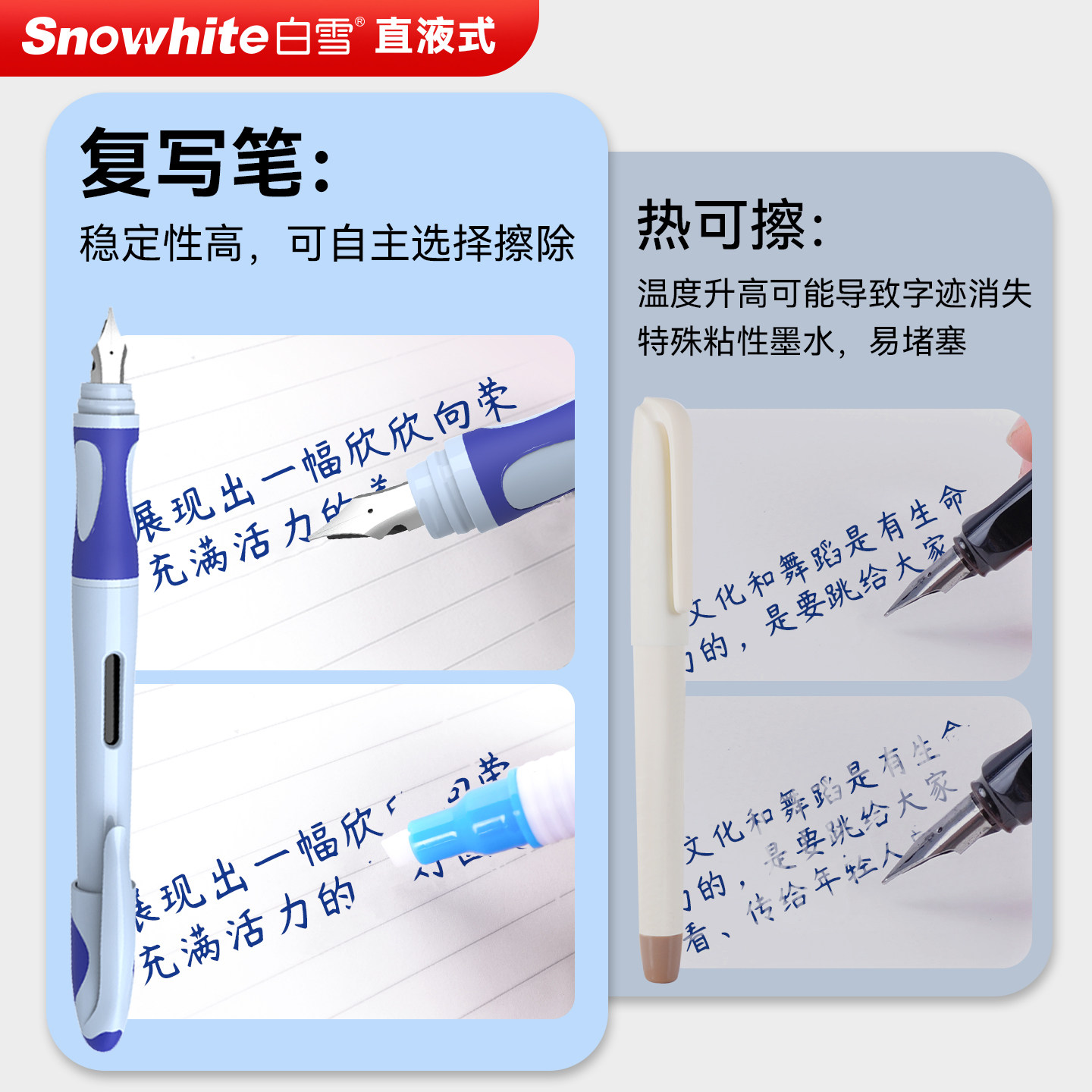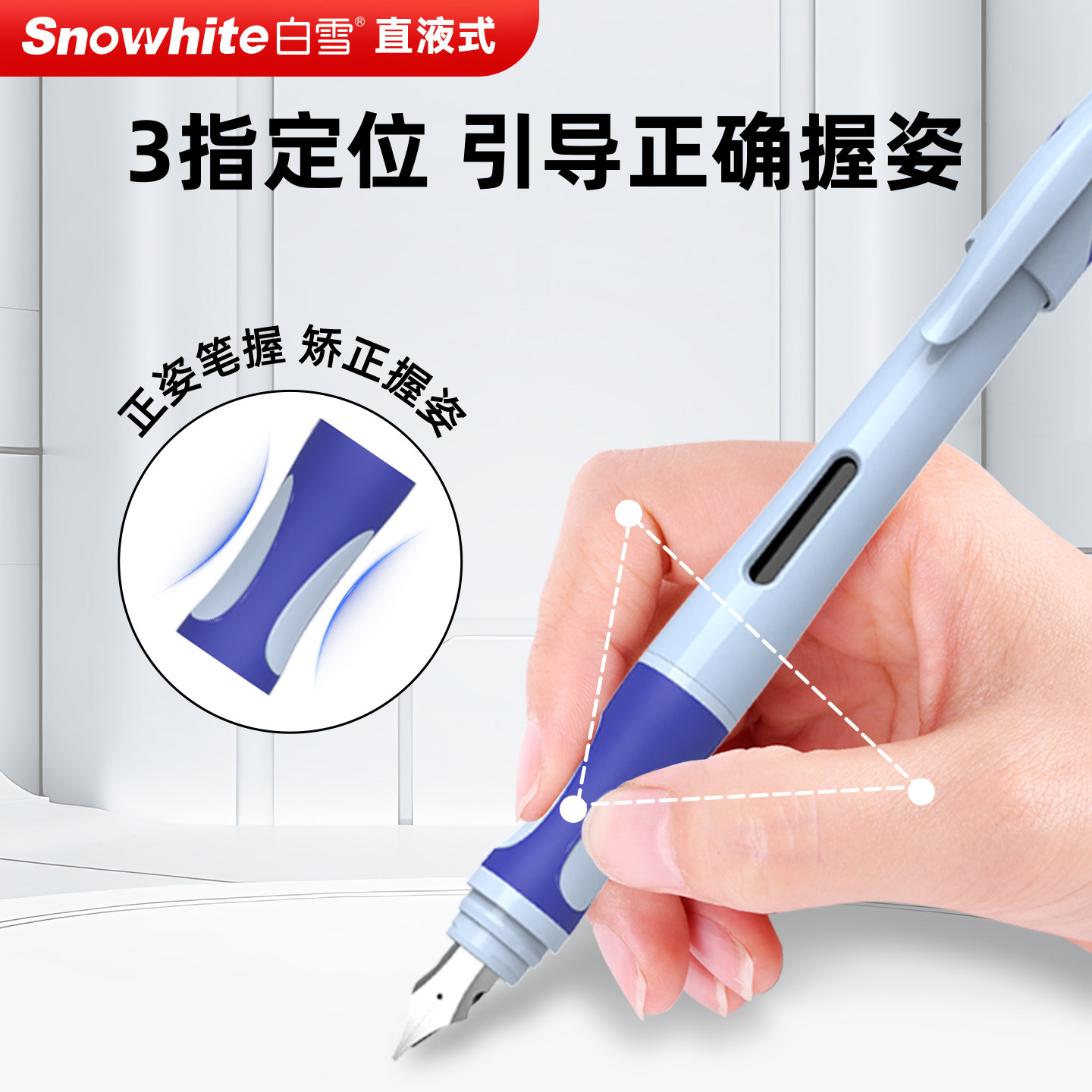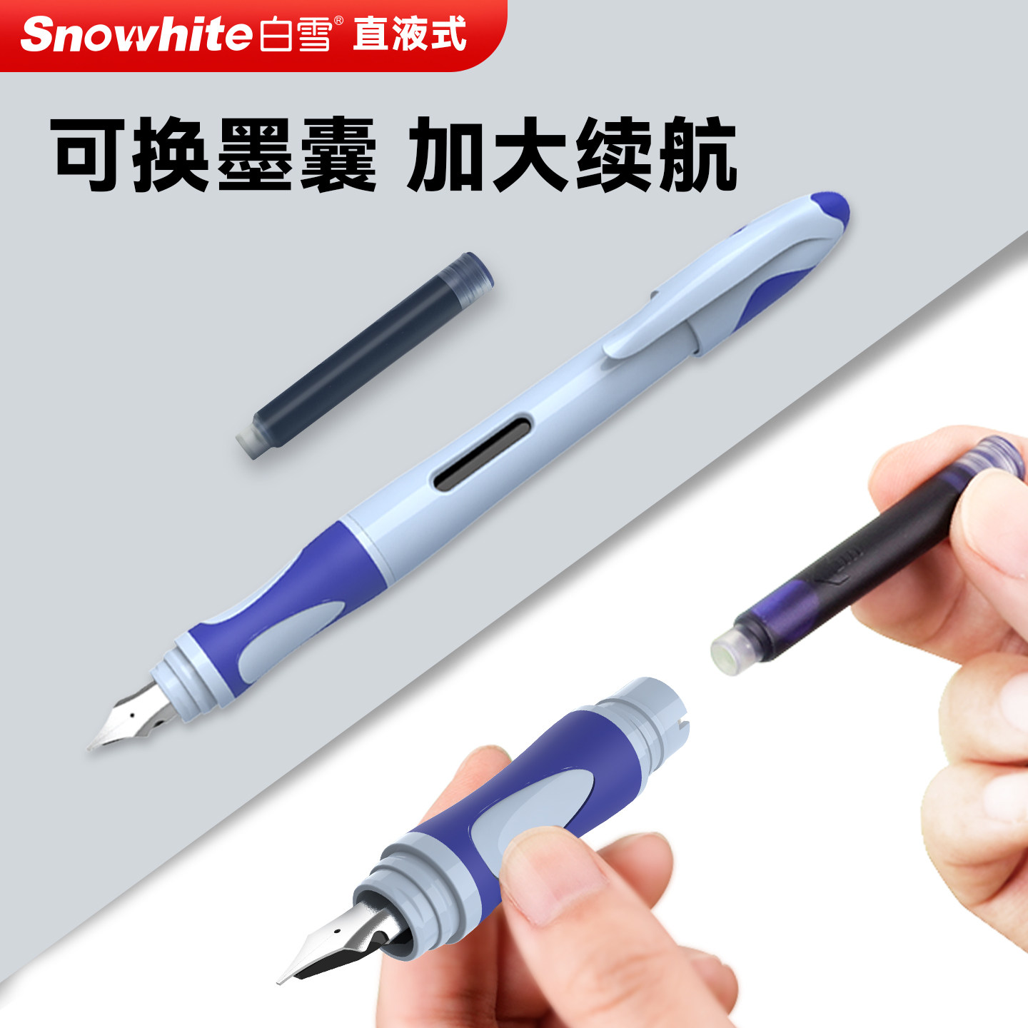 白雪SnowhiteFP505直液式练字钢笔可换墨囊墨胆EF尖三年级小学生专用练字正姿钢笔速干蓝色蓝黑手账钢笔套装