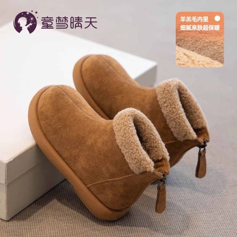 女童靴子真皮马丁靴儿童棉靴2024冬季新款勃肯鞋短靴反绒皮雪地靴