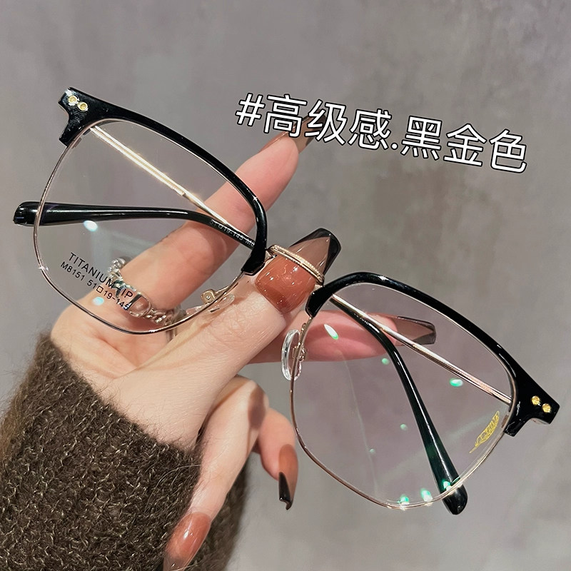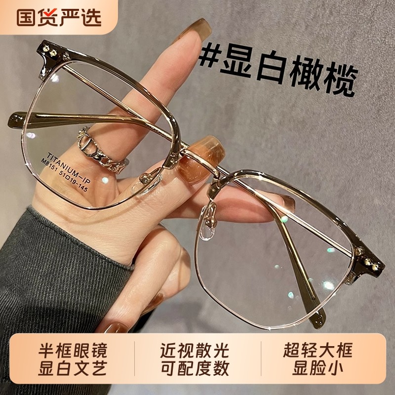 超轻金丝半框眼镜女近视可配有度数男大框显脸小眼睛镜架大脸显瘦