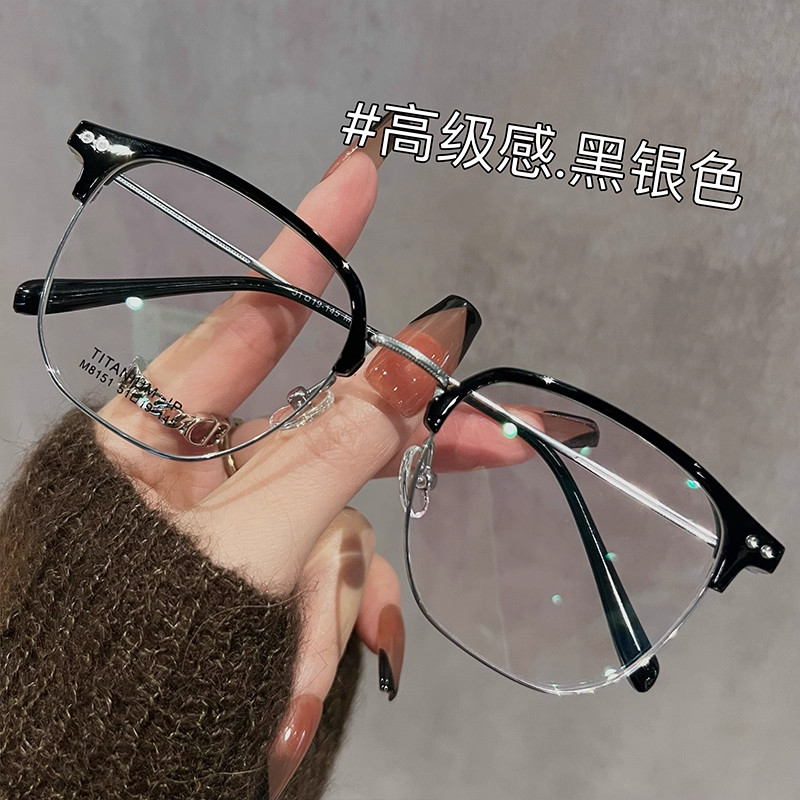 德国纯钛半框近视眼镜男款可配度数商务简约防蓝光镜片超轻镜架女