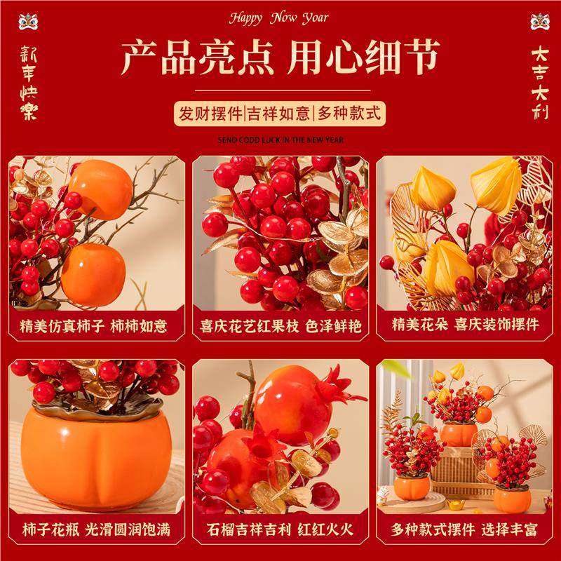2026新年乔迁柿柿如意摆件春节福桶玄关客厅过年氛围布置好物摆放