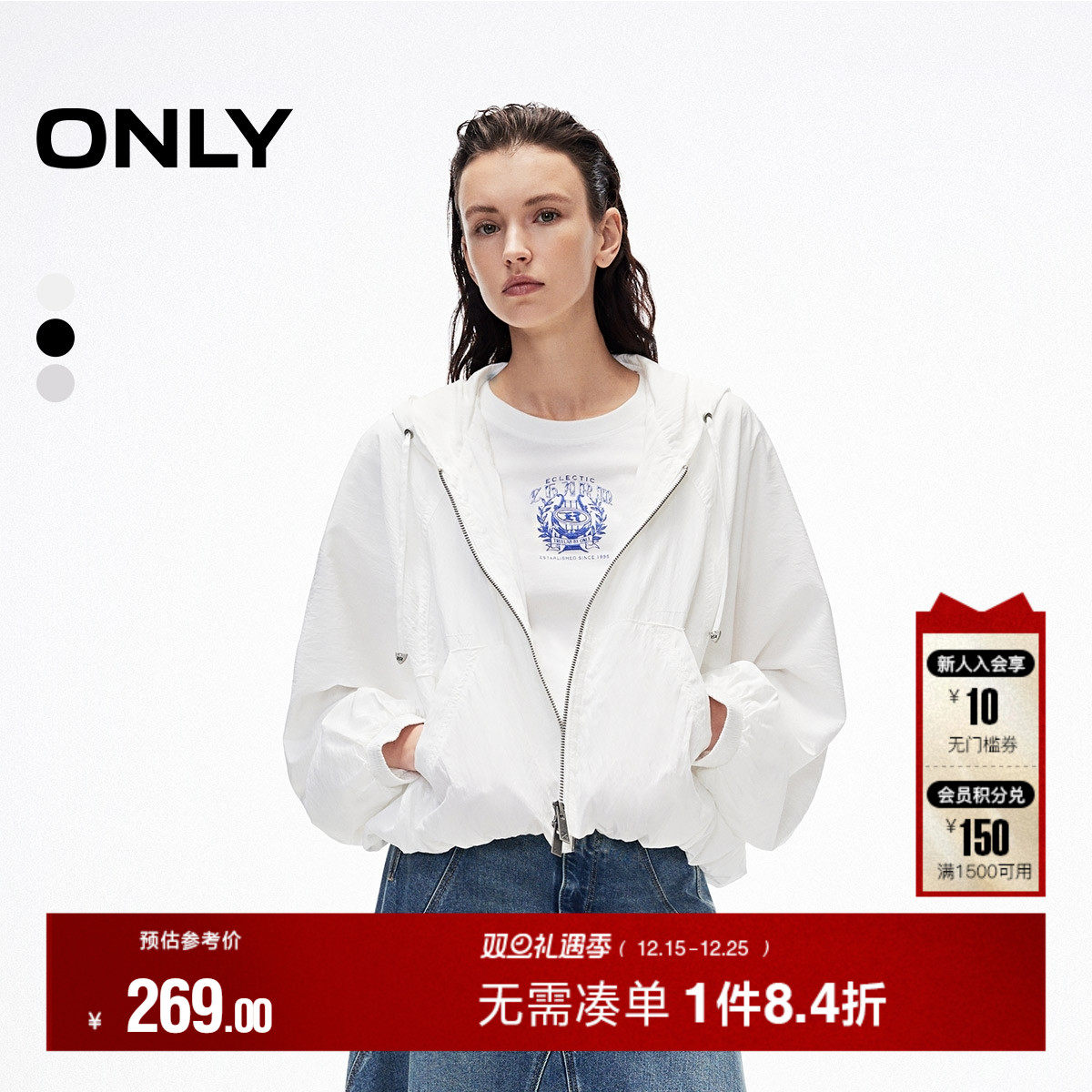ONLY2025秋季新款简约纯色连帽抽绳宽松蝙蝠袖短款长袖外套女