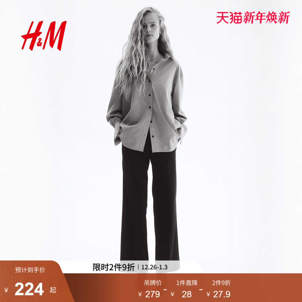 HM女装裤子2025年冬季新款西装裤休闲裤直筒裤腿舒适长裤1293652