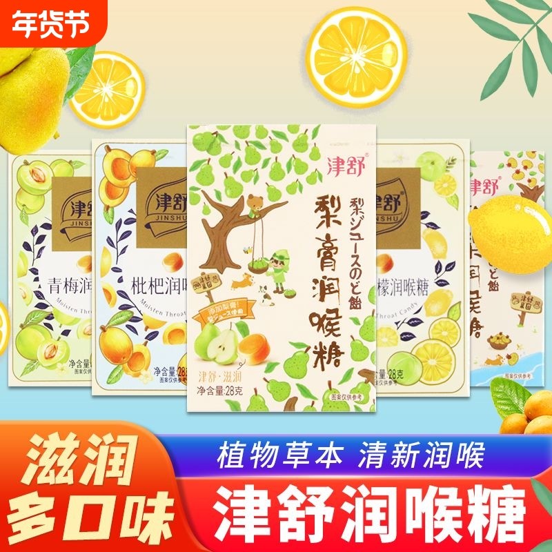 津舒润喉糖梨膏果汁清凉薄荷糖枇杷糖果青梅柠檬硬糖零食盒装刺梨
