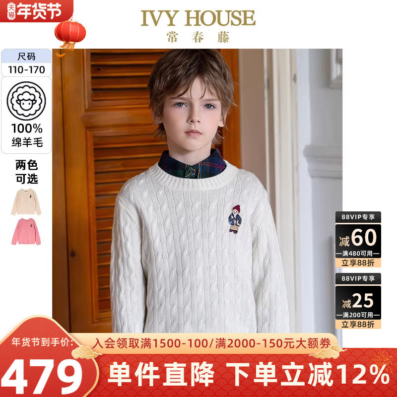 IVY HOUSE常春藤儿童装男女童冬季新款 绵羊毛绞花毛衣亲子装上衣