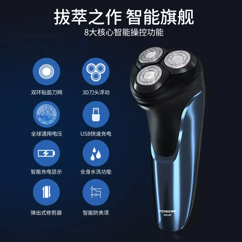博锐剃须刀电动男士刮胡刀胡须刀刮胡子刀快充便携水洗礼物正品