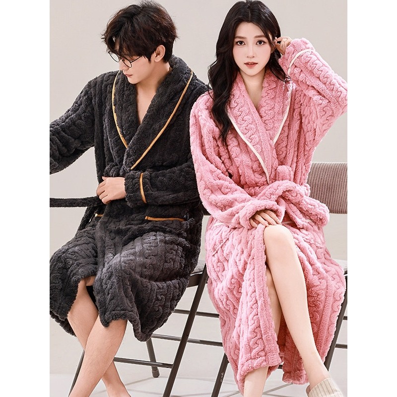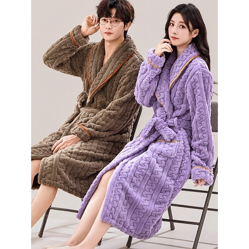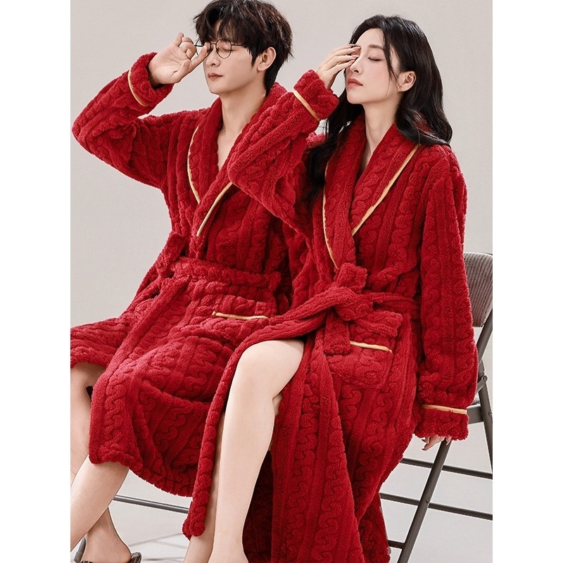 红豆新款睡袍春秋季情侣长袖加长加厚双面绒珊瑚绒浴袍男女生睡袍