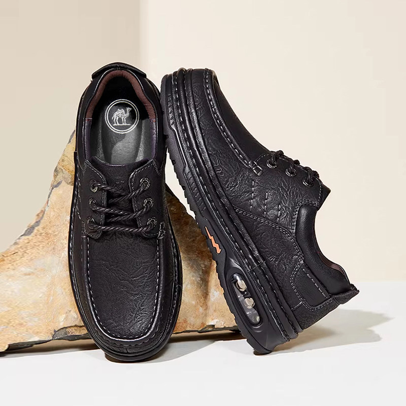 骆驼男鞋秋季商务抓纹牛皮爸爸鞋软底气垫大头鞋厚底休闲皮鞋男士