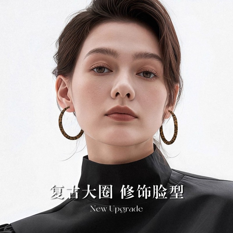 豹纹琥珀色耳圈女秋冬2025新款爆款高级耳饰复古港风大耳环圈圈
