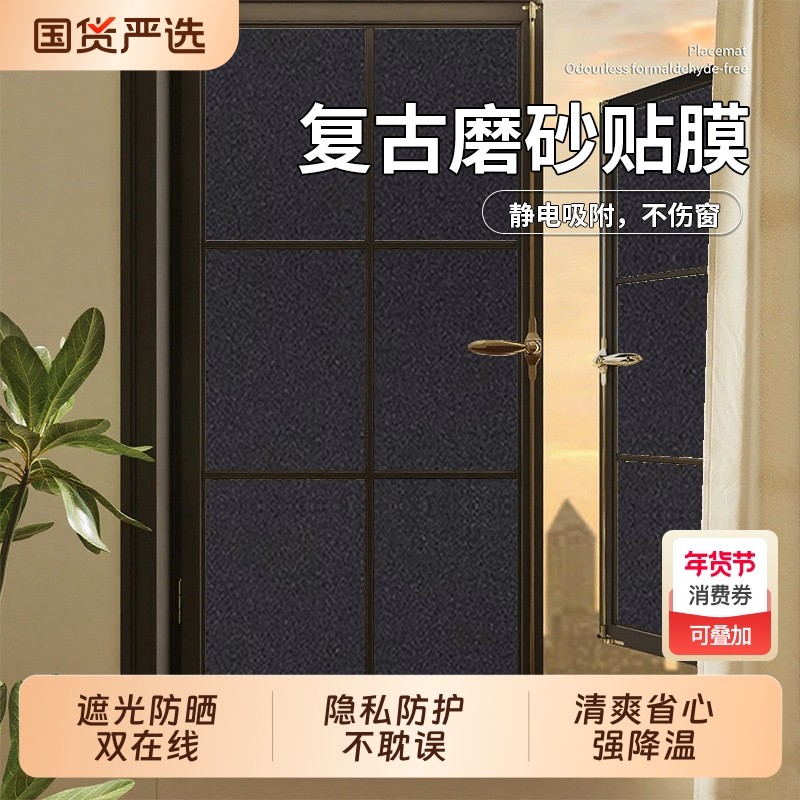 玻璃贴纸窗户防走光磨砂防窥遮阳门贴膜防晒膜隔热窗贴全遮光神器