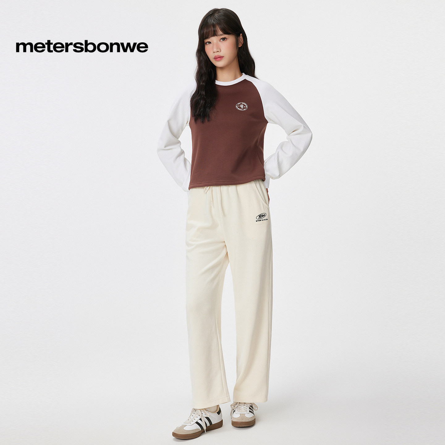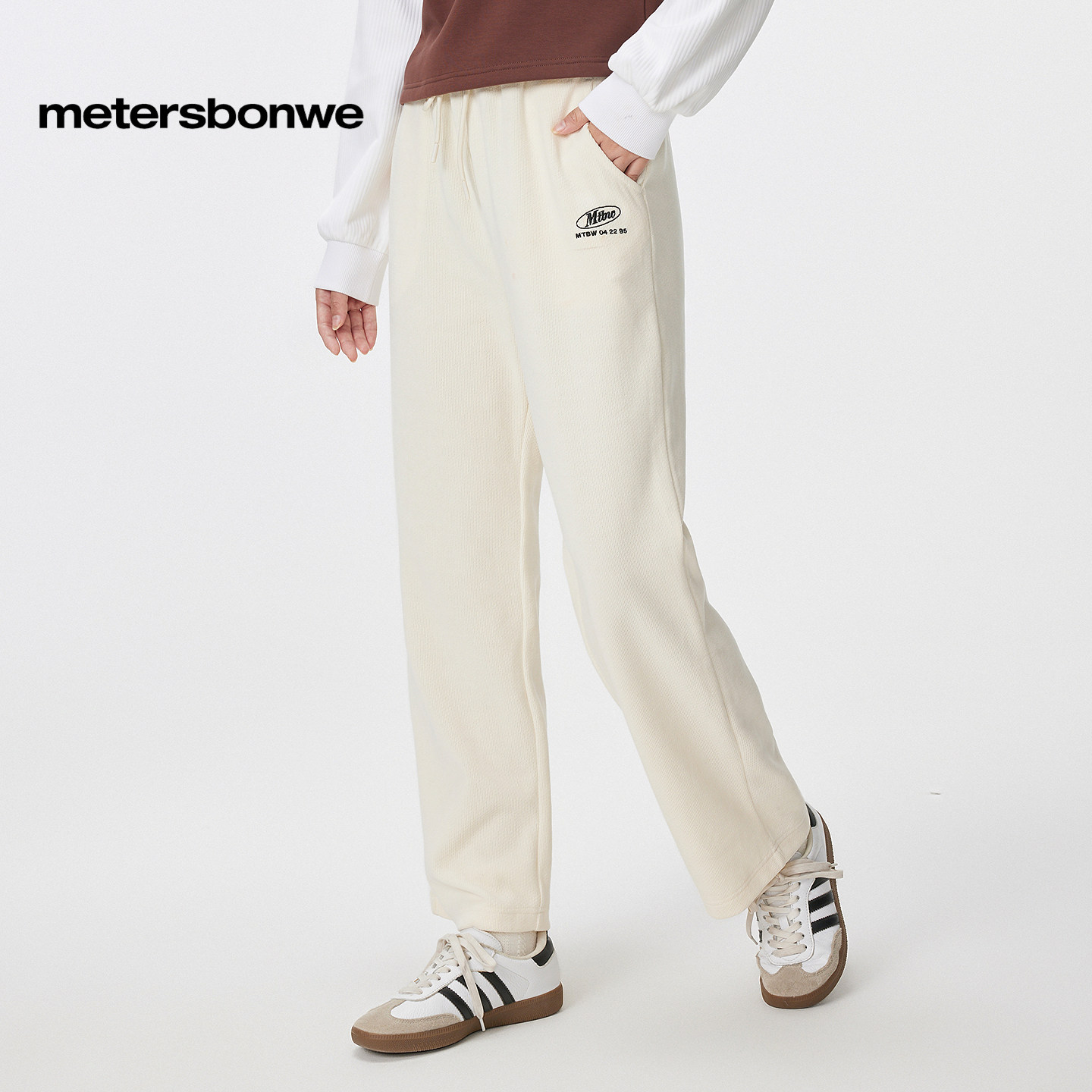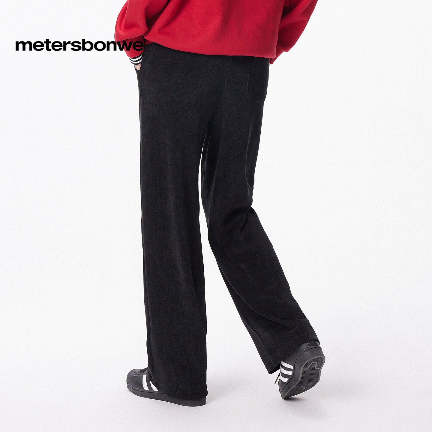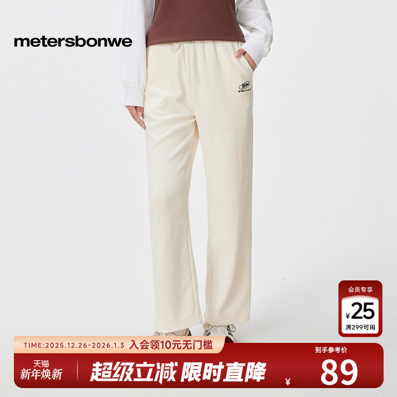 美特斯邦威潮流休闲裤女秋冬宽松直筒裤长裤时尚刺绣纯色舒适下装