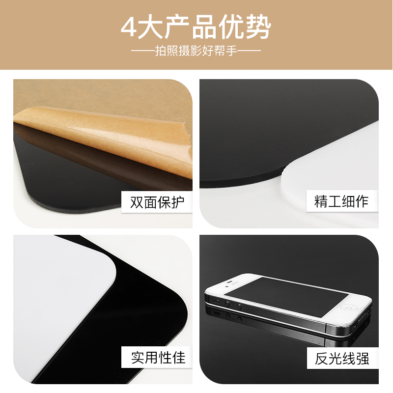 摄影钢化倒影板30*30CM亚克力纯黑白底图拍摄道具反光黑色白色背景亚克力白板背景板拍照摆拍吸光布镜面底板